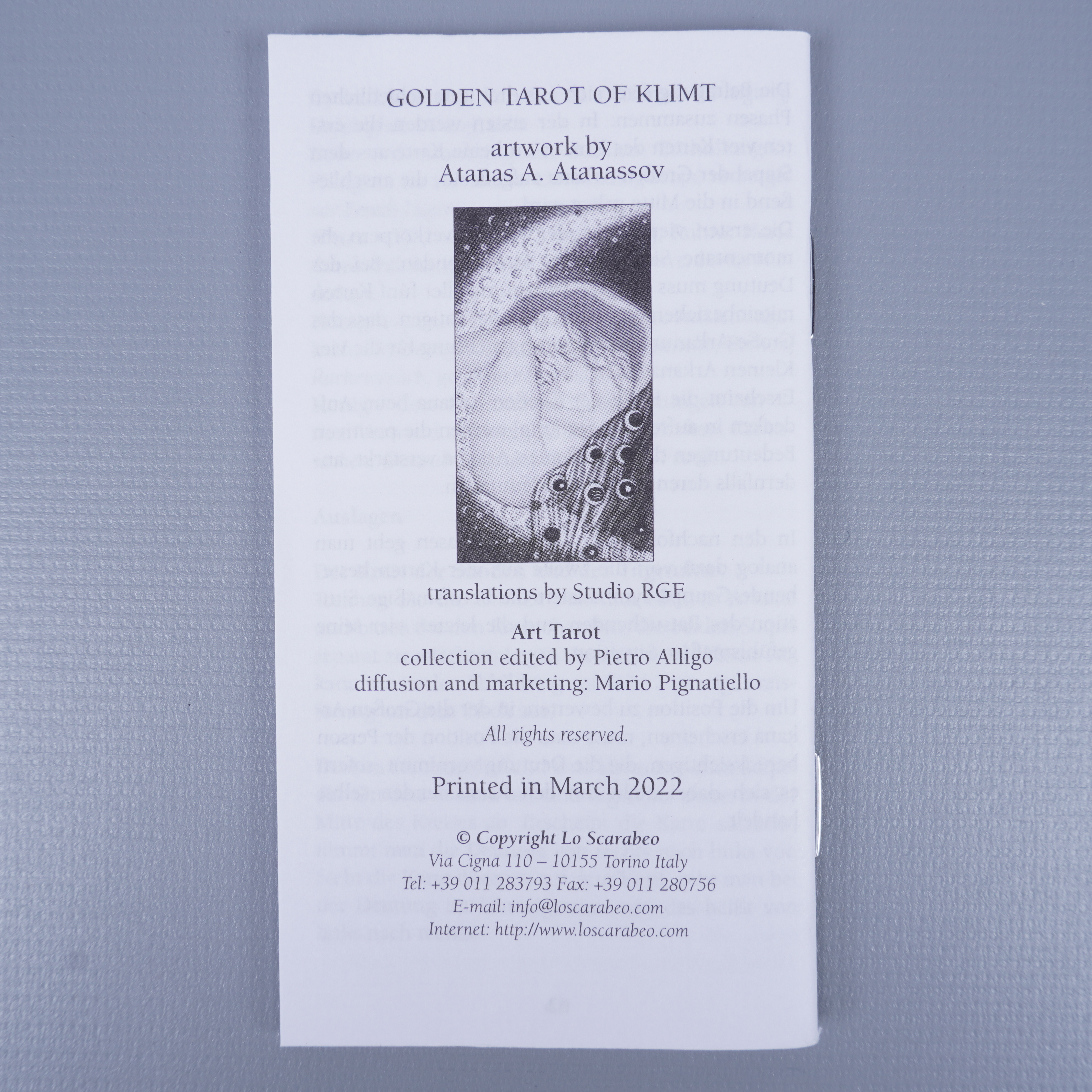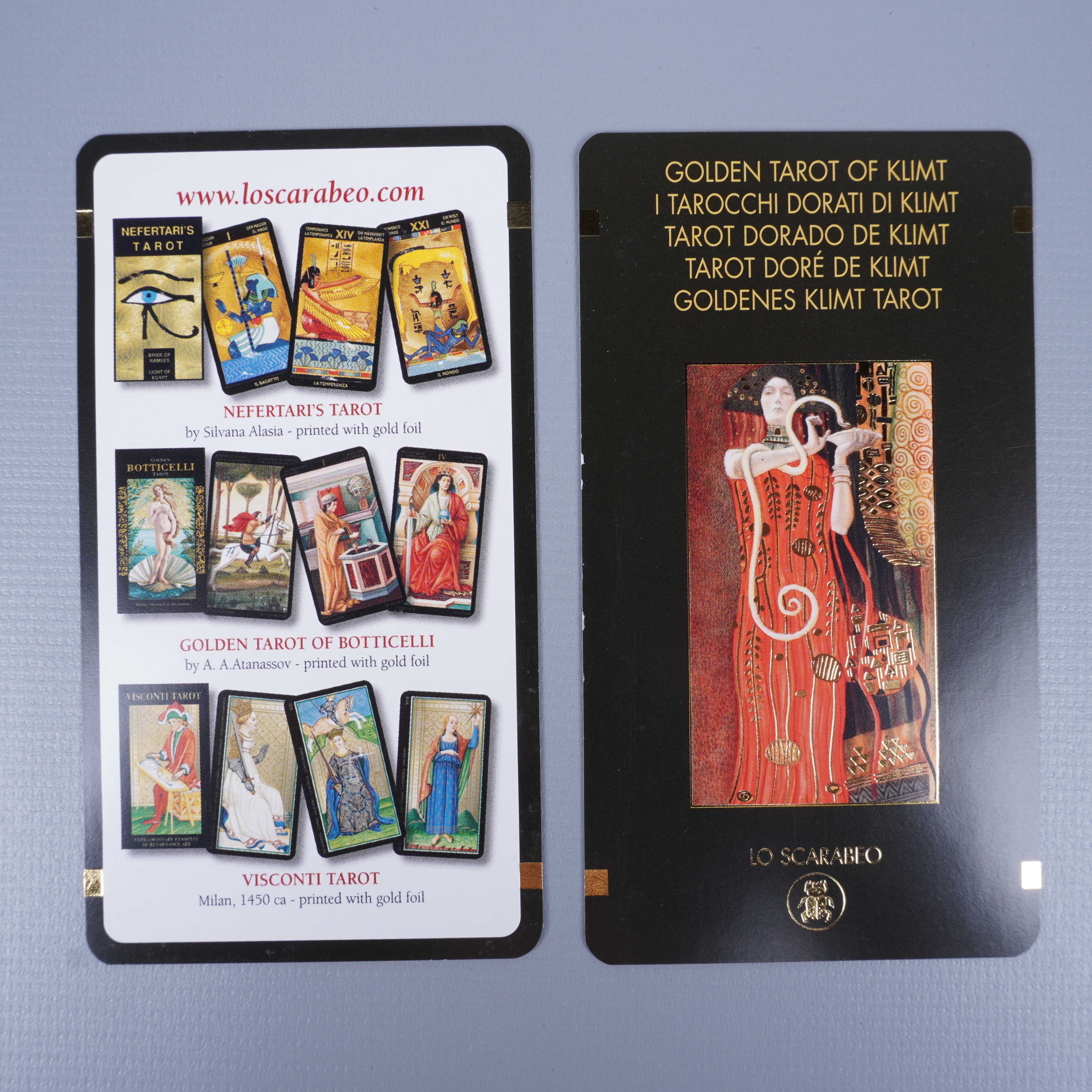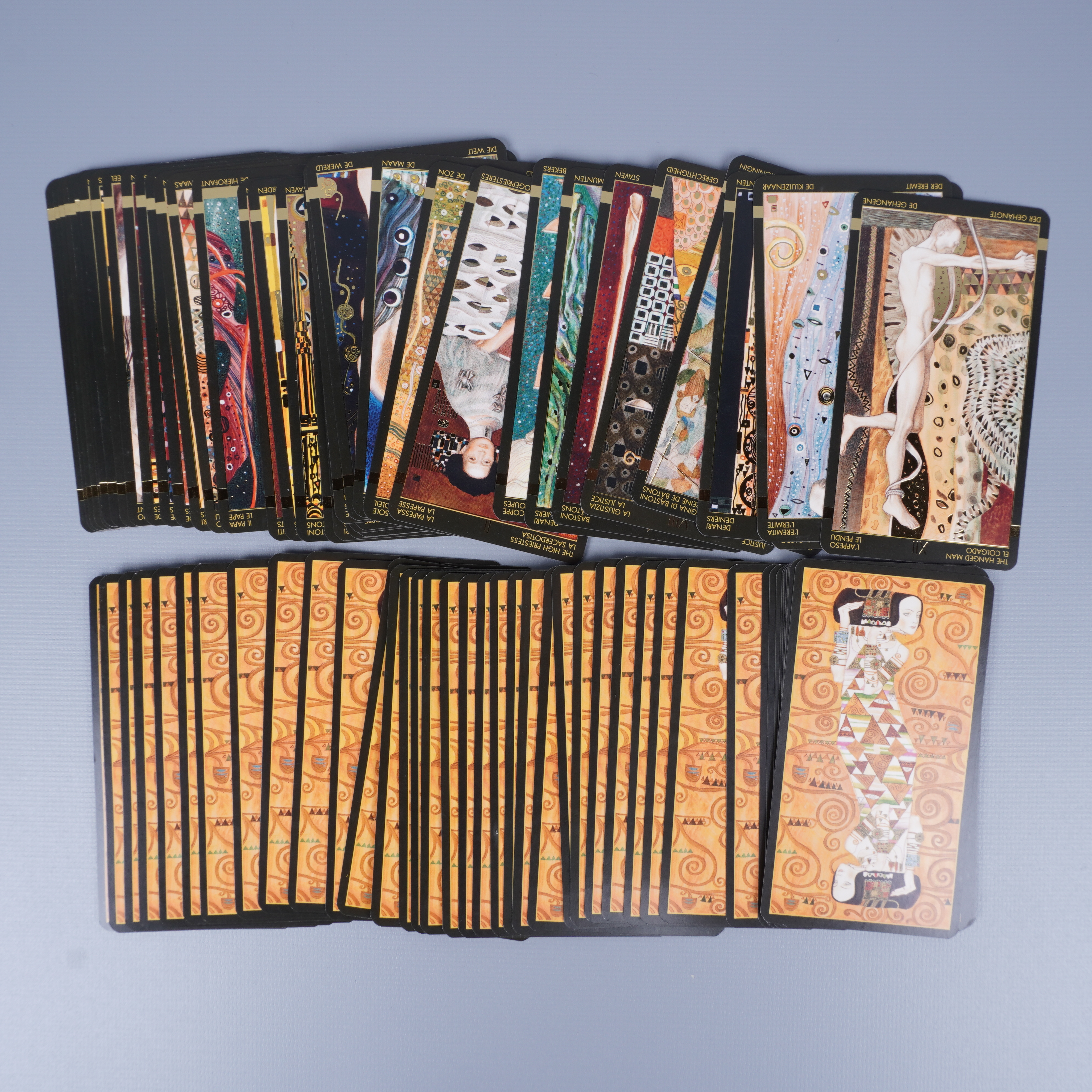 Lyxiga tarotkort med konstnärliga motiv inspirerade av Gustav Klimt. Kortleken innehåller 78 vackert illustrerade kort i standardstorlek med guldfärgade detaljer, samt ett medföljande svartvitt häfte med instruktioner på engelska. Motiven känns kreativa och unika, perfekta för dig som älskar både konst och tarot.