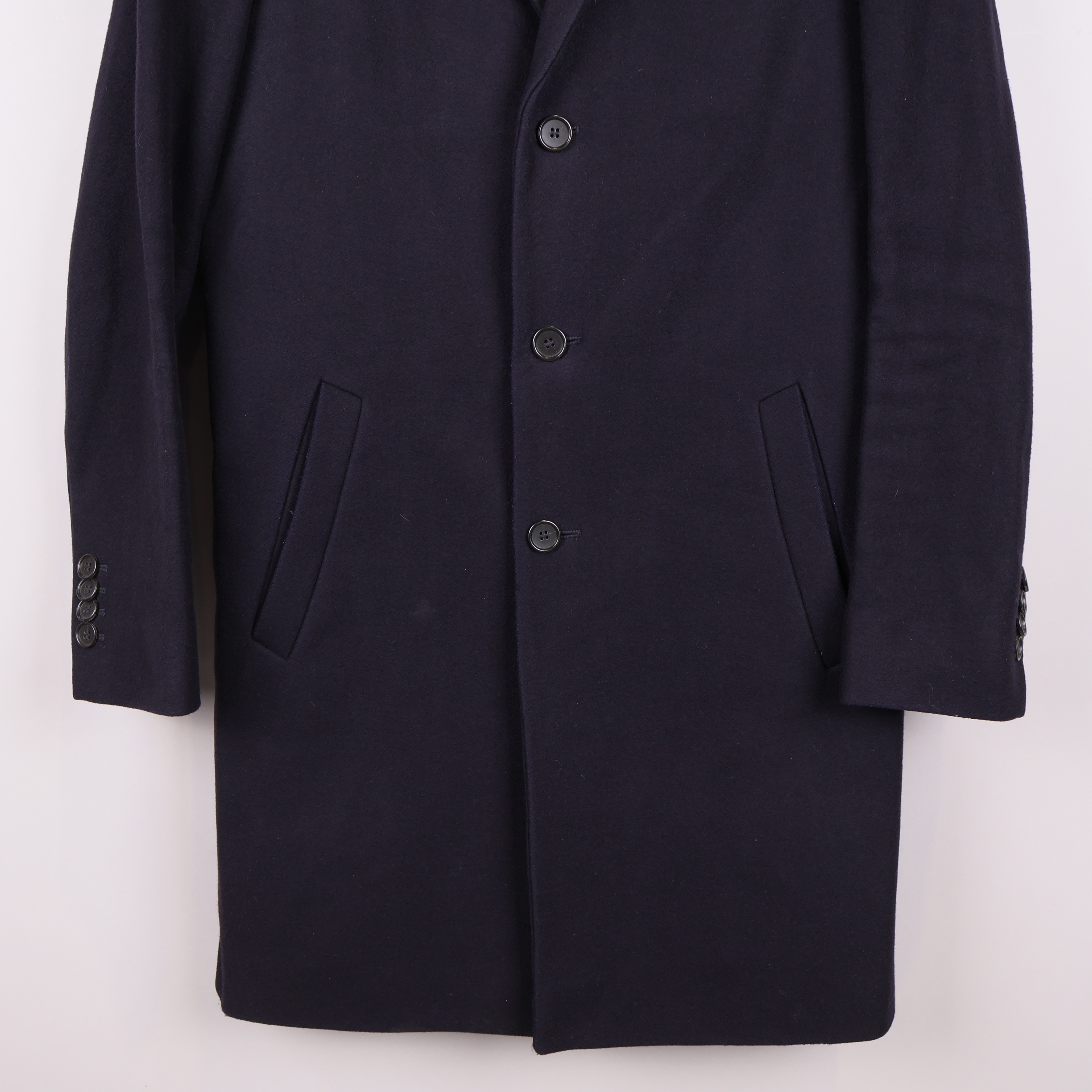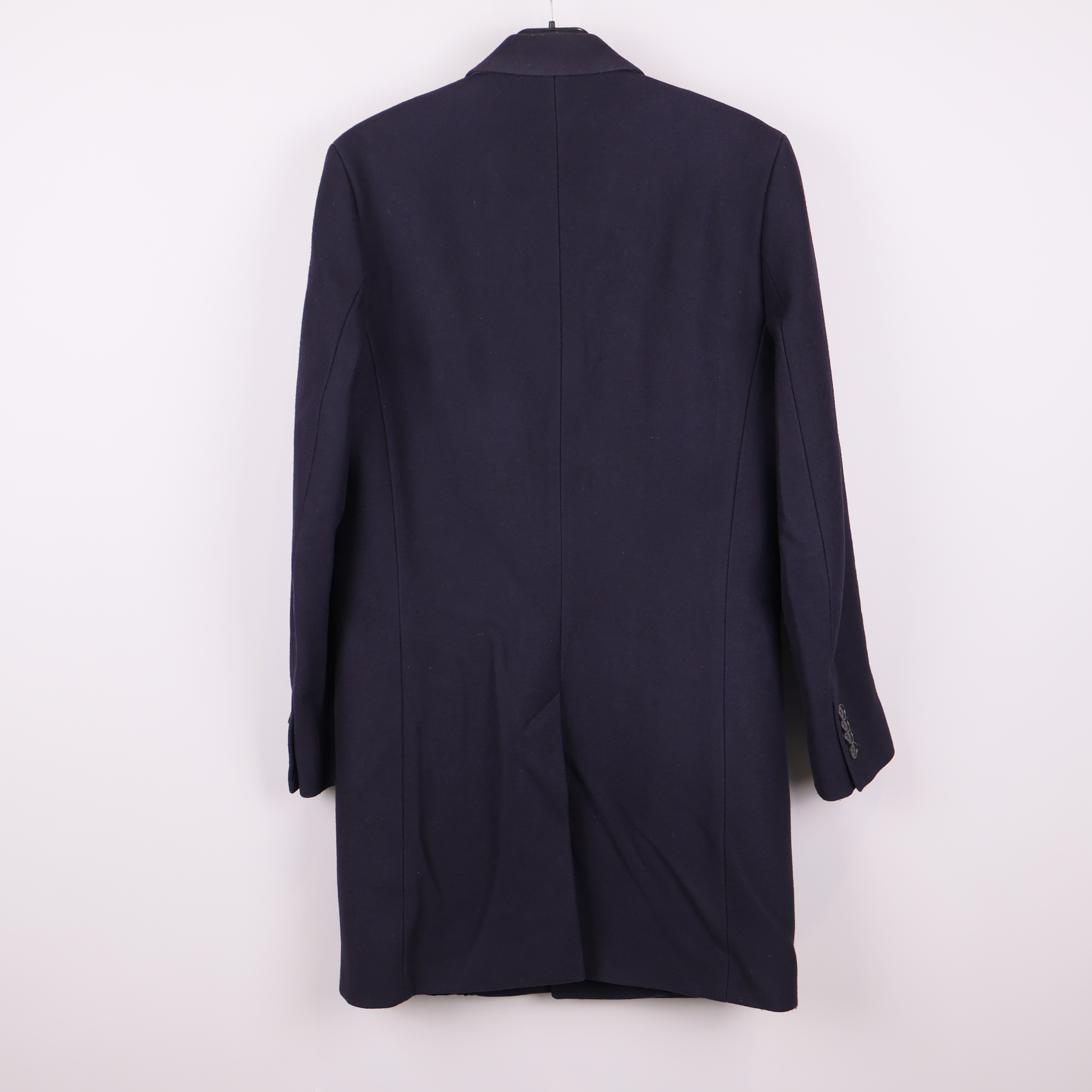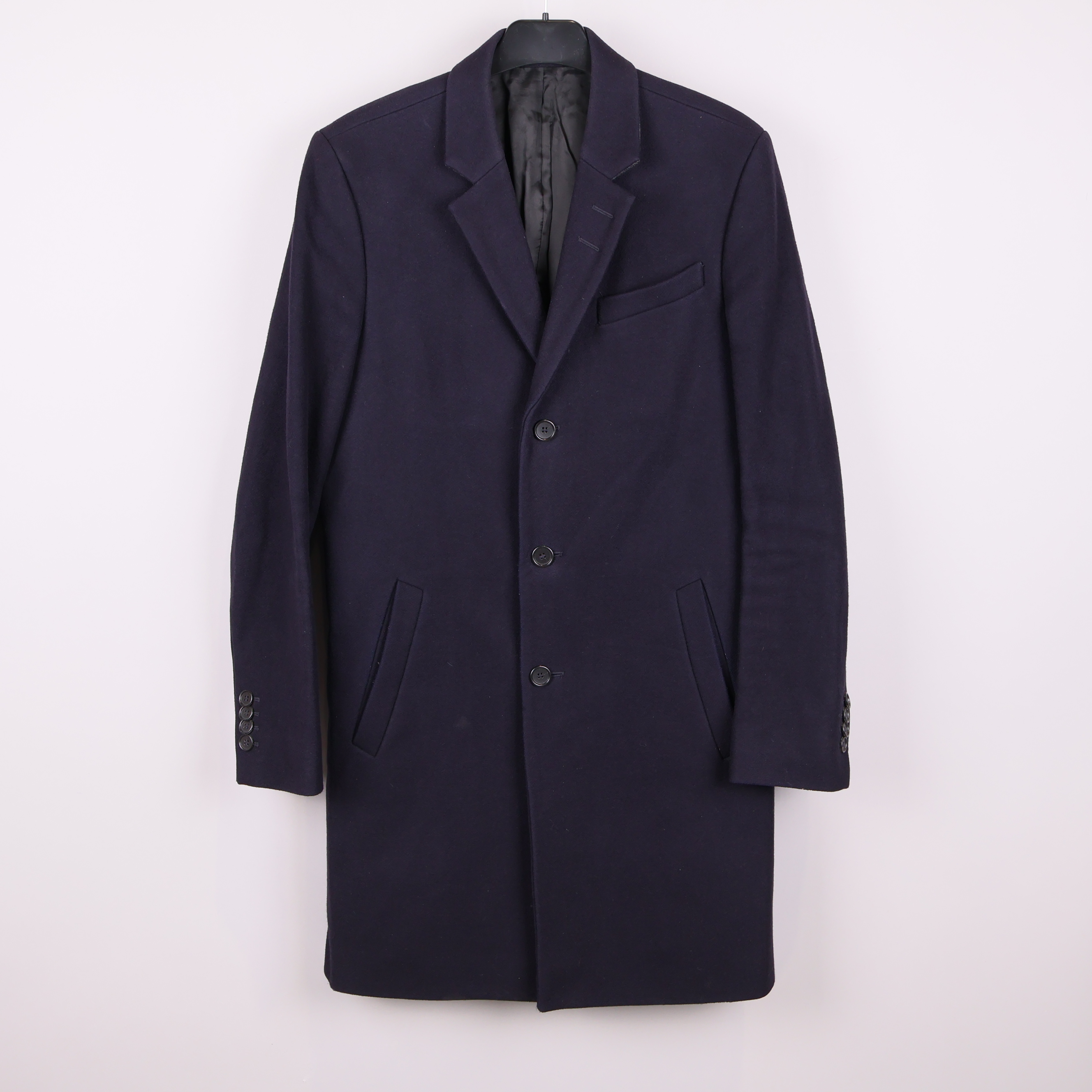 En stilren kappa från Tiger of Sweden i en djup, mörkblå ton. Designen är klassisk med knäppning framtill, två sidfickor och slät yta för en tidlös look. Fodrad insida och smala slag ger ett modernt intryck. Perfekt för dig som uppskattar rena linjer och elegant silhuett.