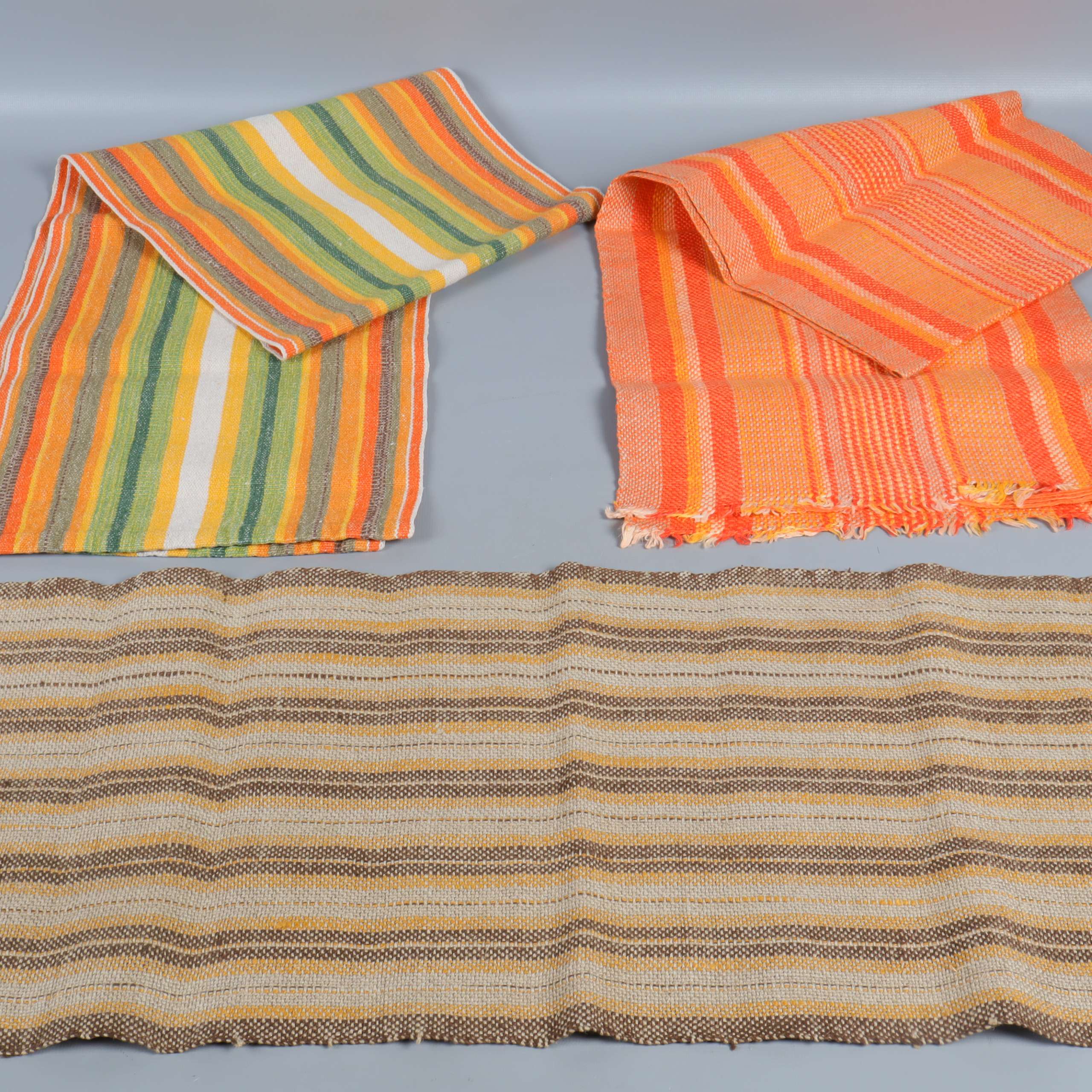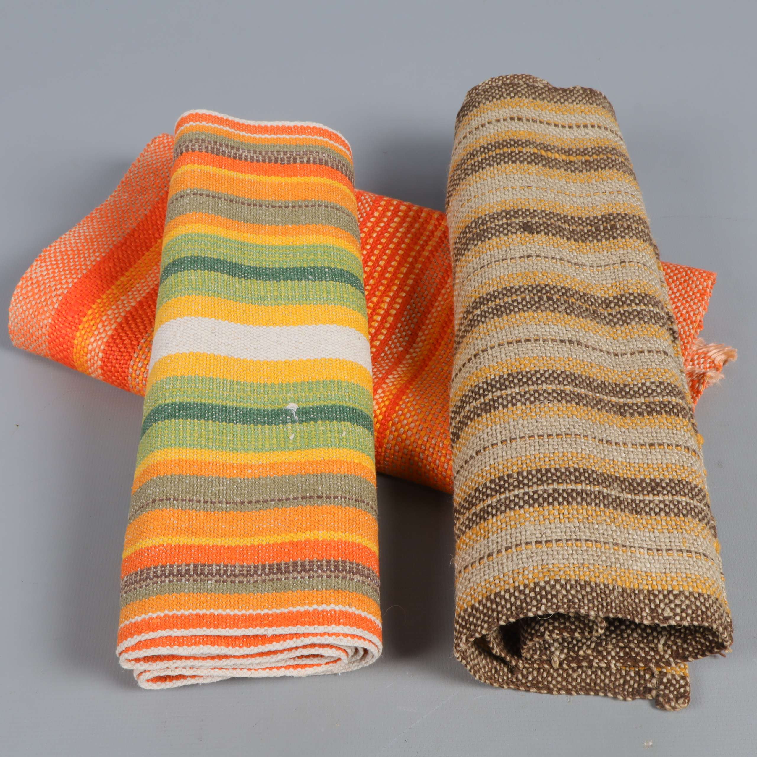 Set med tre löpare i olika färgstarka och neutrala nyanser. Klassisk randig design ger textilierna en varm, hemtrevlig känsla och passar perfekt på matbord eller som dekoration. Mjuka material och varierande färgkombinationer för en lekfull touch.