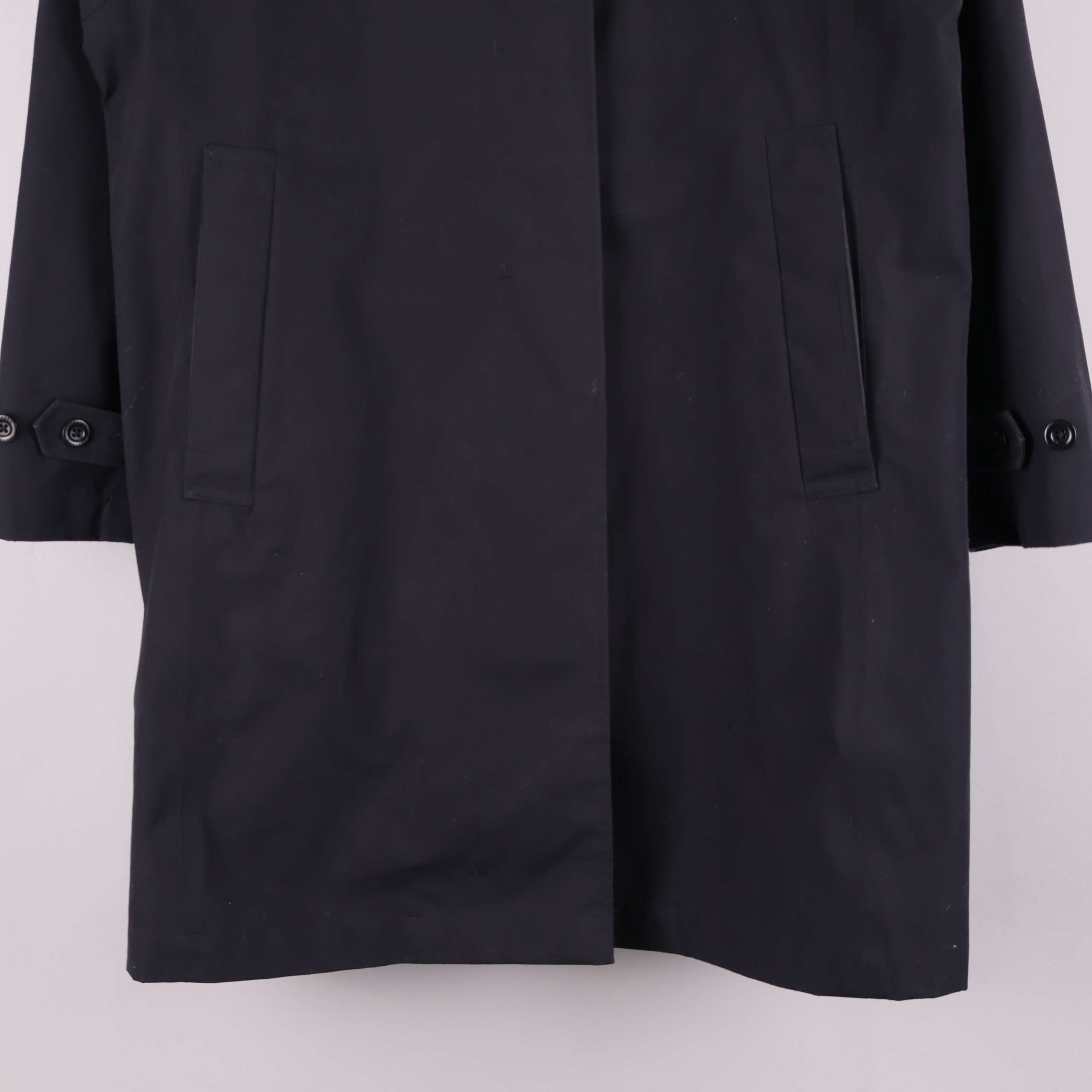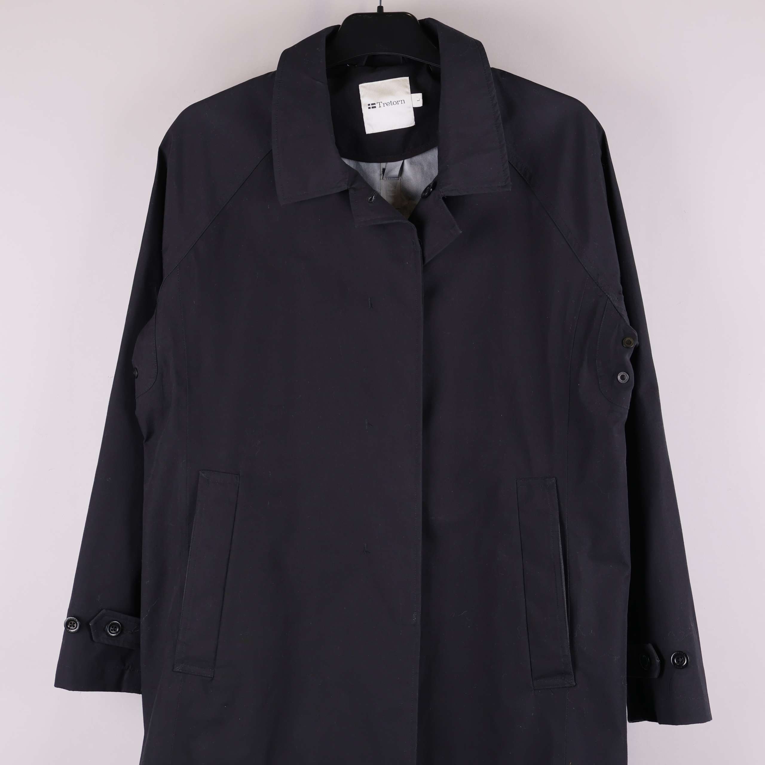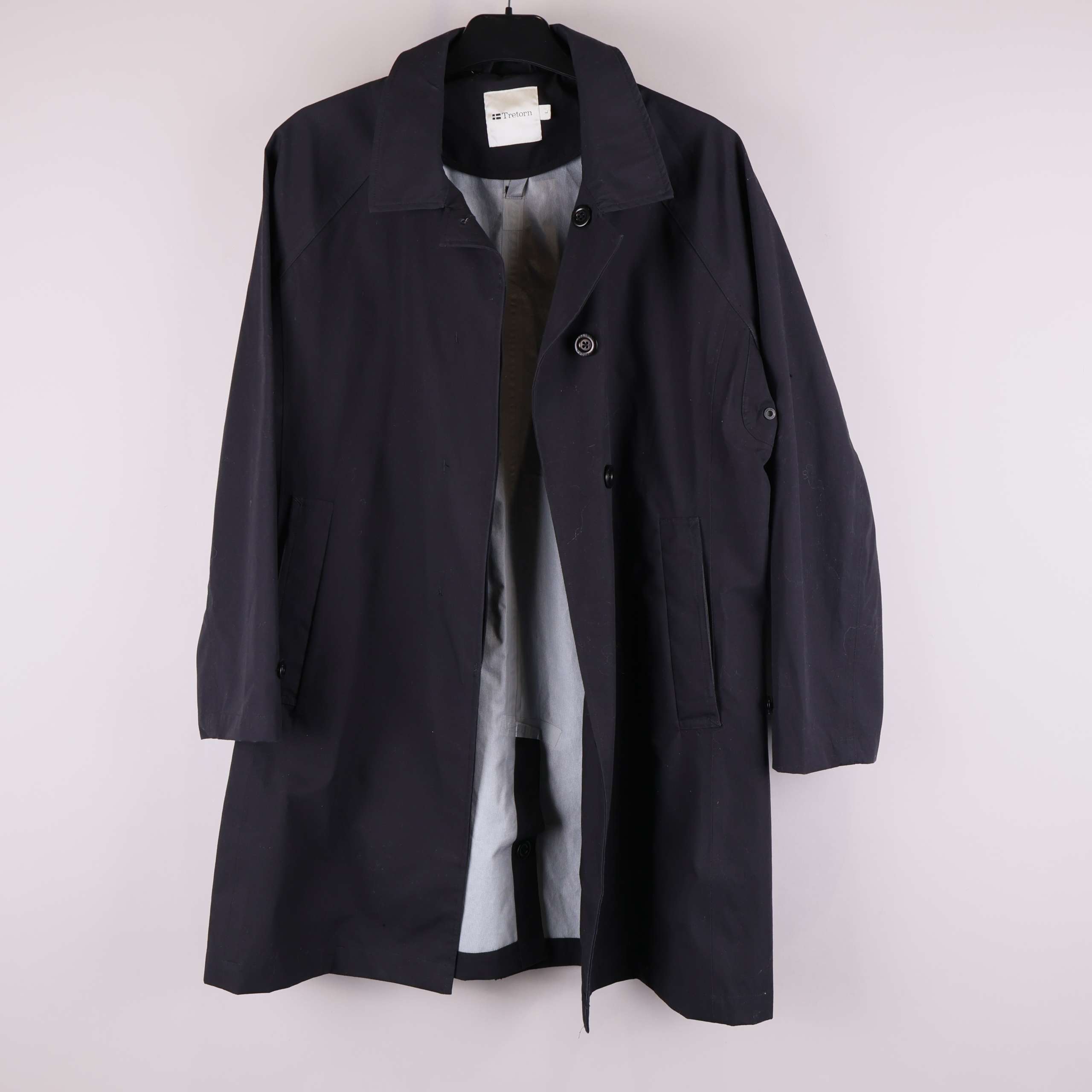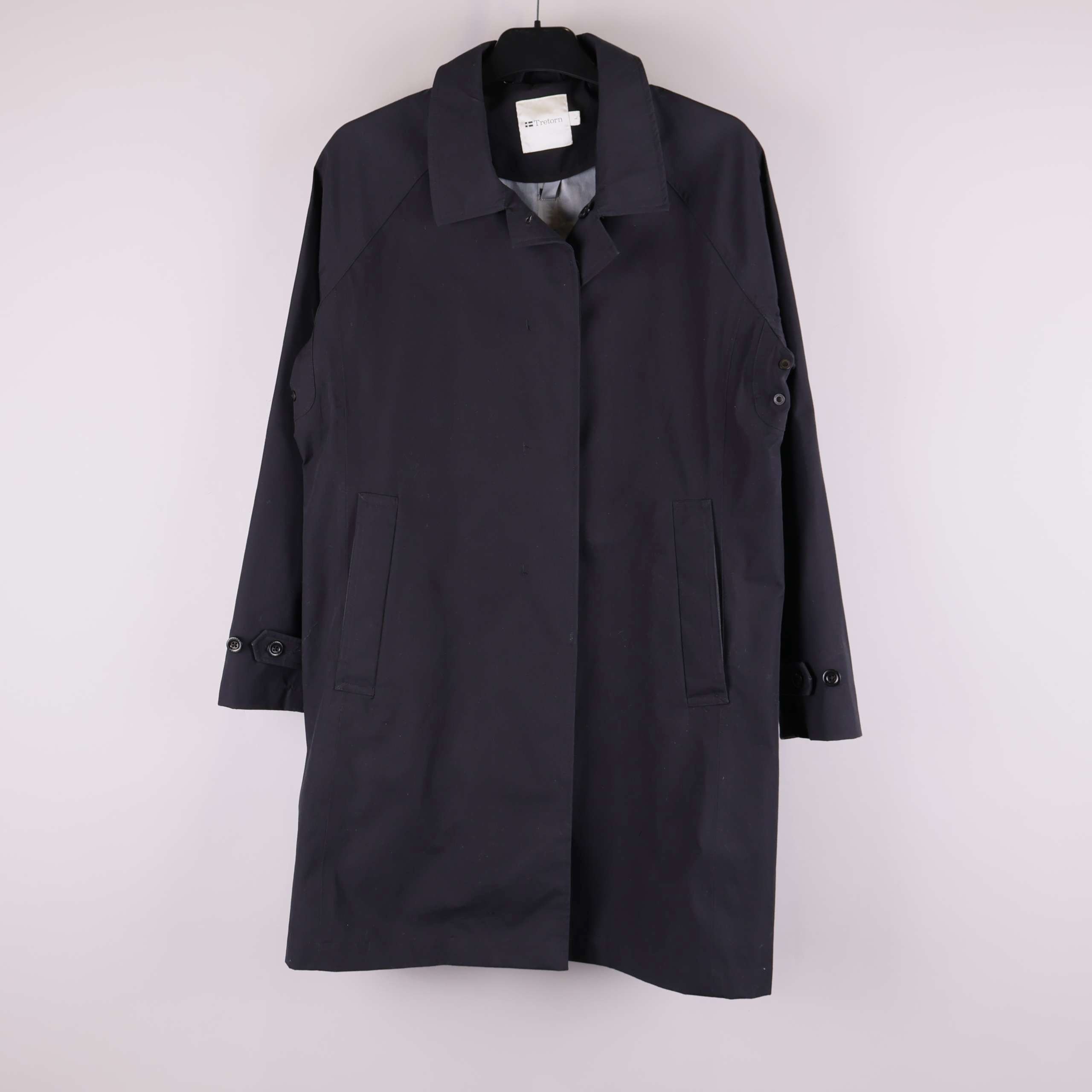 Stilren trenchcoat med rak passform och klassisk krage. Jackan är helfärgad och har diskreta knappar framtill samt två sidofickor. Justerbara ärmslut med knapp för personlig passform. Fodret i ljusgrå ton ger en snygg kontrast mot den mörka ytterytan. En tidlös modell som känns både modern och enkel att matcha.