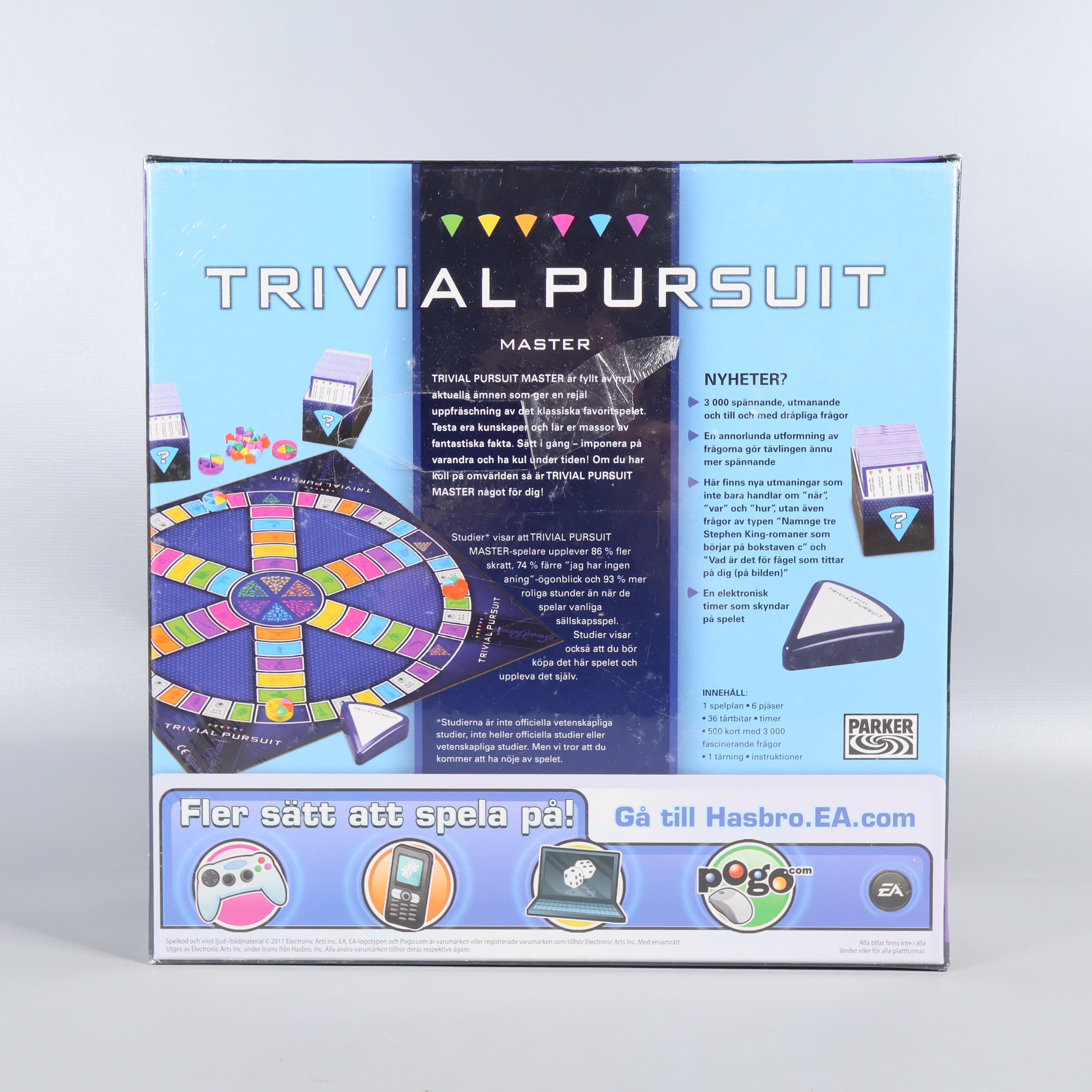 Detta är Trivial Pursuit Master, en klassiker bland frågespel, perfekt för dig som gillar utmanande quiz och gemenskap. Spelet har tydliga färgfält, snygg design och kommer i en blå förpackning med färgglada detaljer. Lämpligt för 2 eller fler spelare från 16 år och uppåt. Texten och spelets funktioner är på svenska.