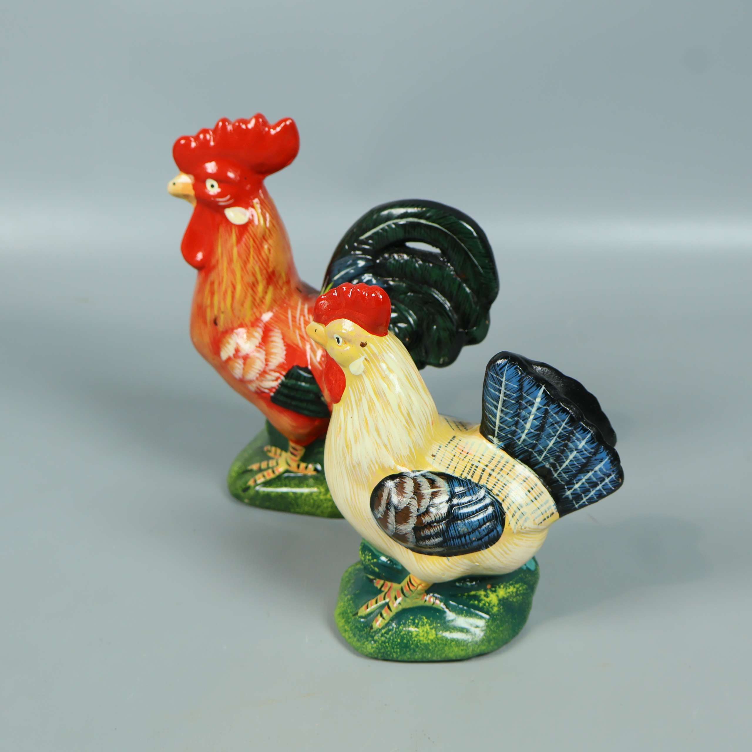 Färgglada handmålade keramiktuppar med detaljerad design och glansig finish. Lekfulla figurer med naturtrogna detaljer och levande färger som skapar en charmig dekoration med vintage vibe.