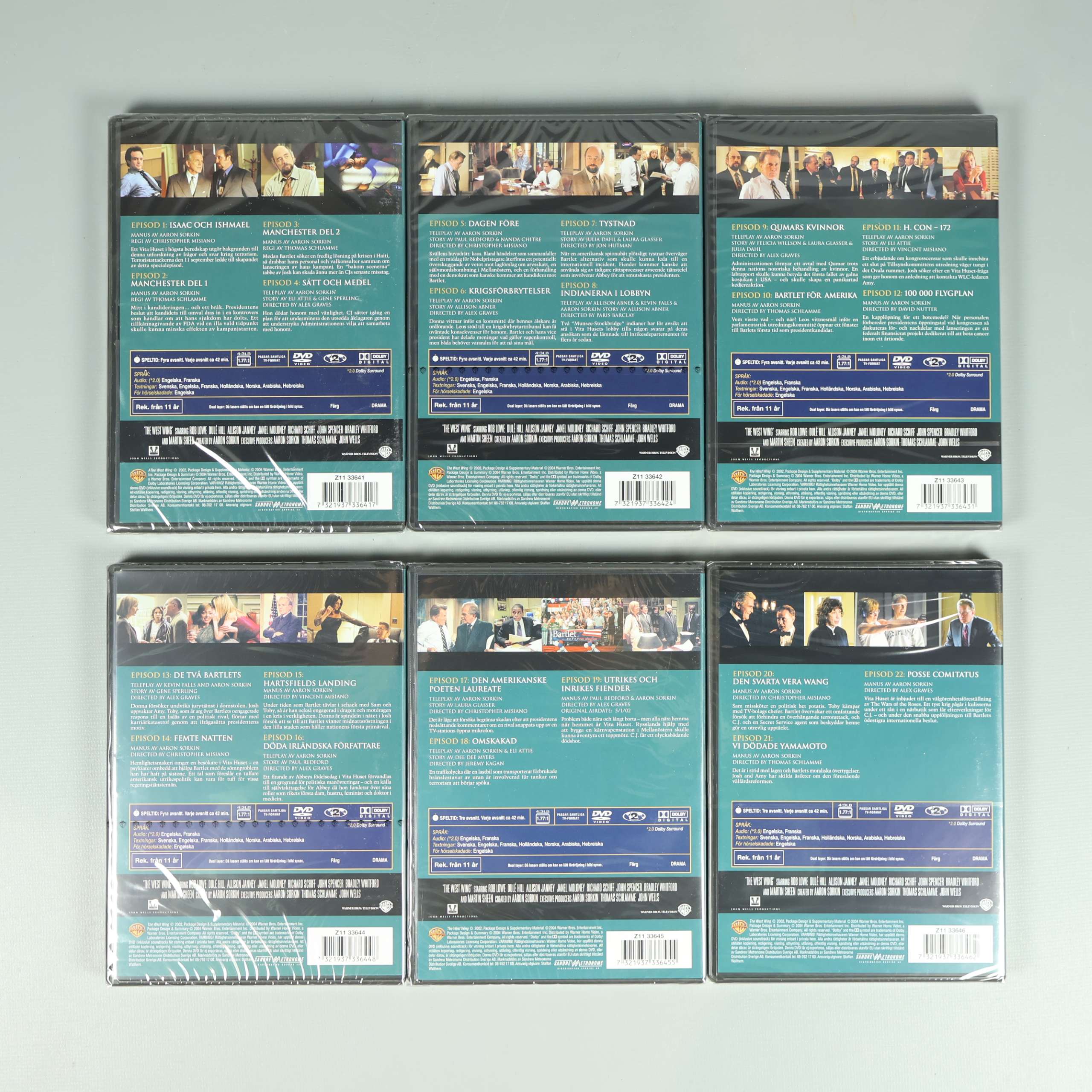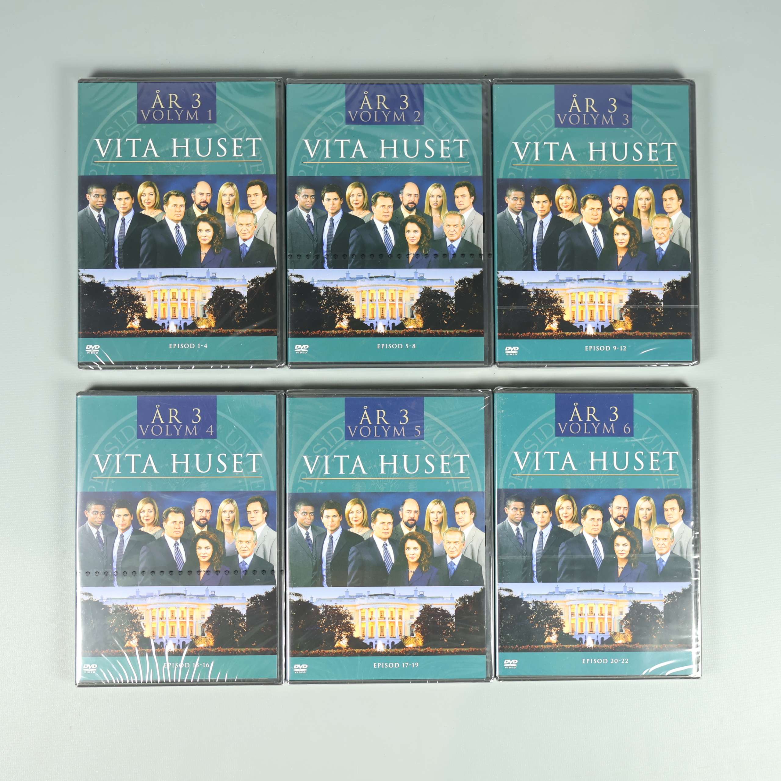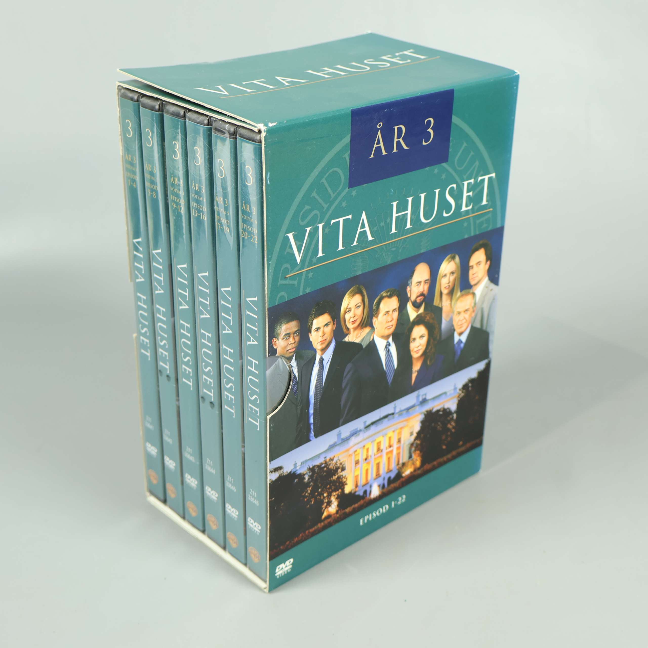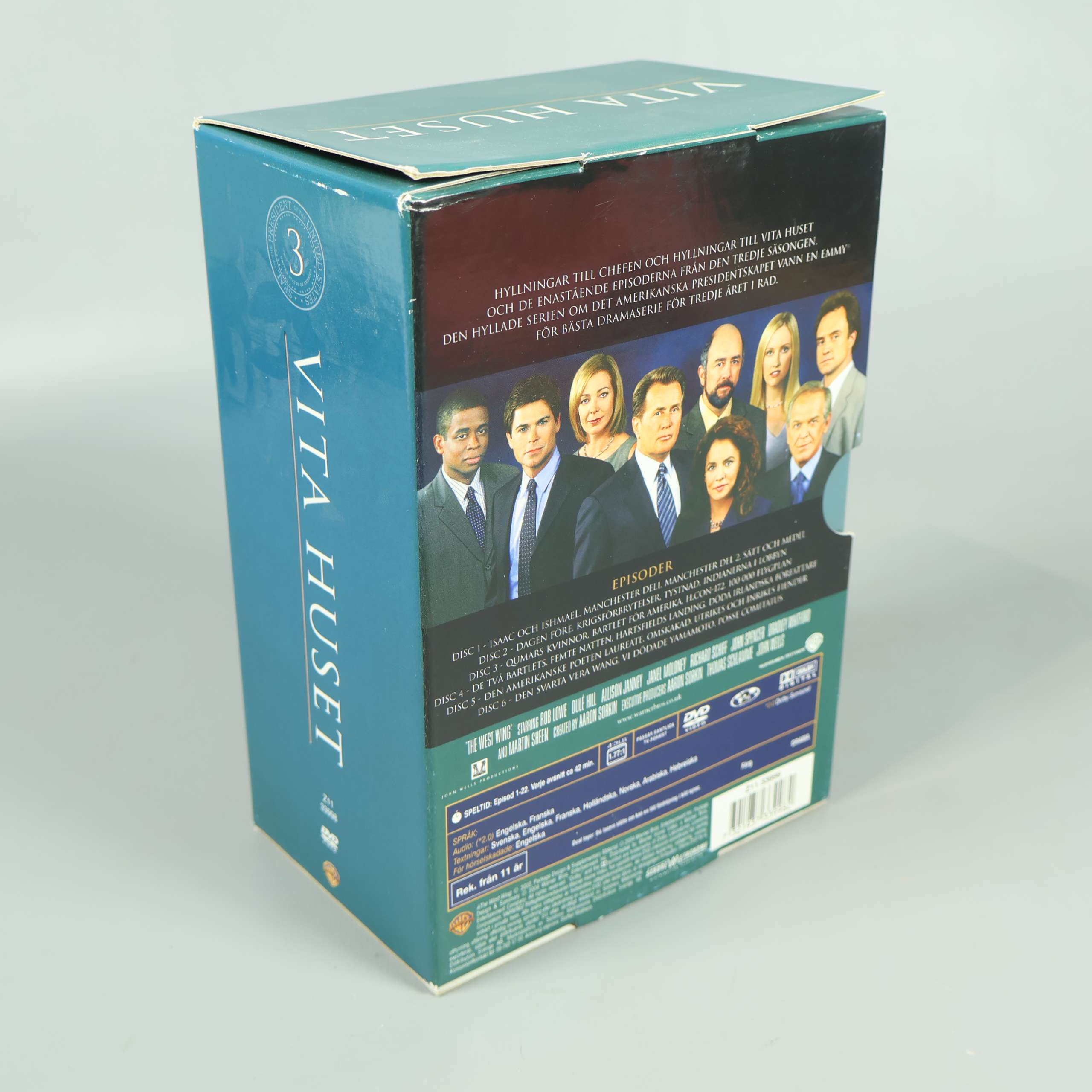 Upptäck tredje säsongen av den hyllade TV-serien Vita Huset, presenterad som en komplett DVD-box med sex separata fodral. Den här samlingsboxen är perfekt för dig som älskar politiska draman och vill utforska intrigerna och de starka karaktärerna som har gjort serien till en favorit. Omslaget pryds av seriens ensemble, medan varje säsongsfodral har en tydlig och enhetlig design som ger en snygg look i bokhyllan. Boxen rymmer totalt sex DVD-skivor och ger dig tillgång till hela årets avsnitt, där smart dialog och intressant handling möts. Texten på förpackningen är lättläst och ger dig tydlig information om innehållet. Förpackningen är tillverkad i robust kartong med synliga bruksspår i hörnen, vilket inte påverkar själva skivorna eller uppspelningsupplevelsen. Passar lika bra för samlaren som för den som vill fördjupa sig i klassisk TV-underhållning på originalspråk. En box du gärna vill ha i din samling för många kvällar framför TV:n.