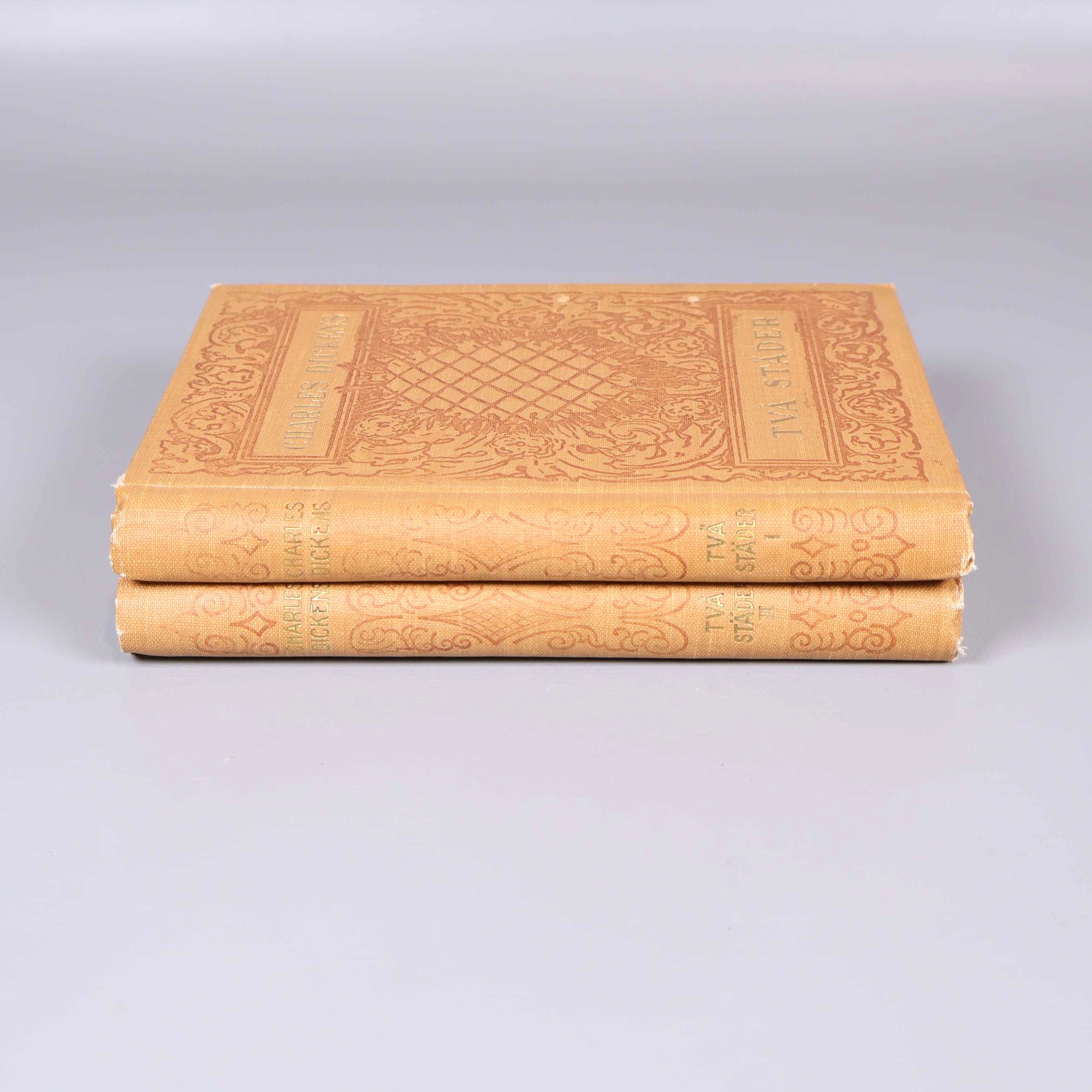 Två band - Charles Dickens - Två städer - dekorativ inbunden utgåva 149 kr Product variation Antal st Beskrivning Vackert bokpaket med två volymer av Charles Dickens klassiker 'Två städer', inbundna i ljusbruna pärmar med dekorativa mönster och guldfolierad text på omslaget. Visa all beskrivning Boktitel Två städer Författare Charles Dickens Skick Använt skick Produkten har blivit använd och kan ha slitits eller ha mindre skador Läs mer om hur vi bedömer
