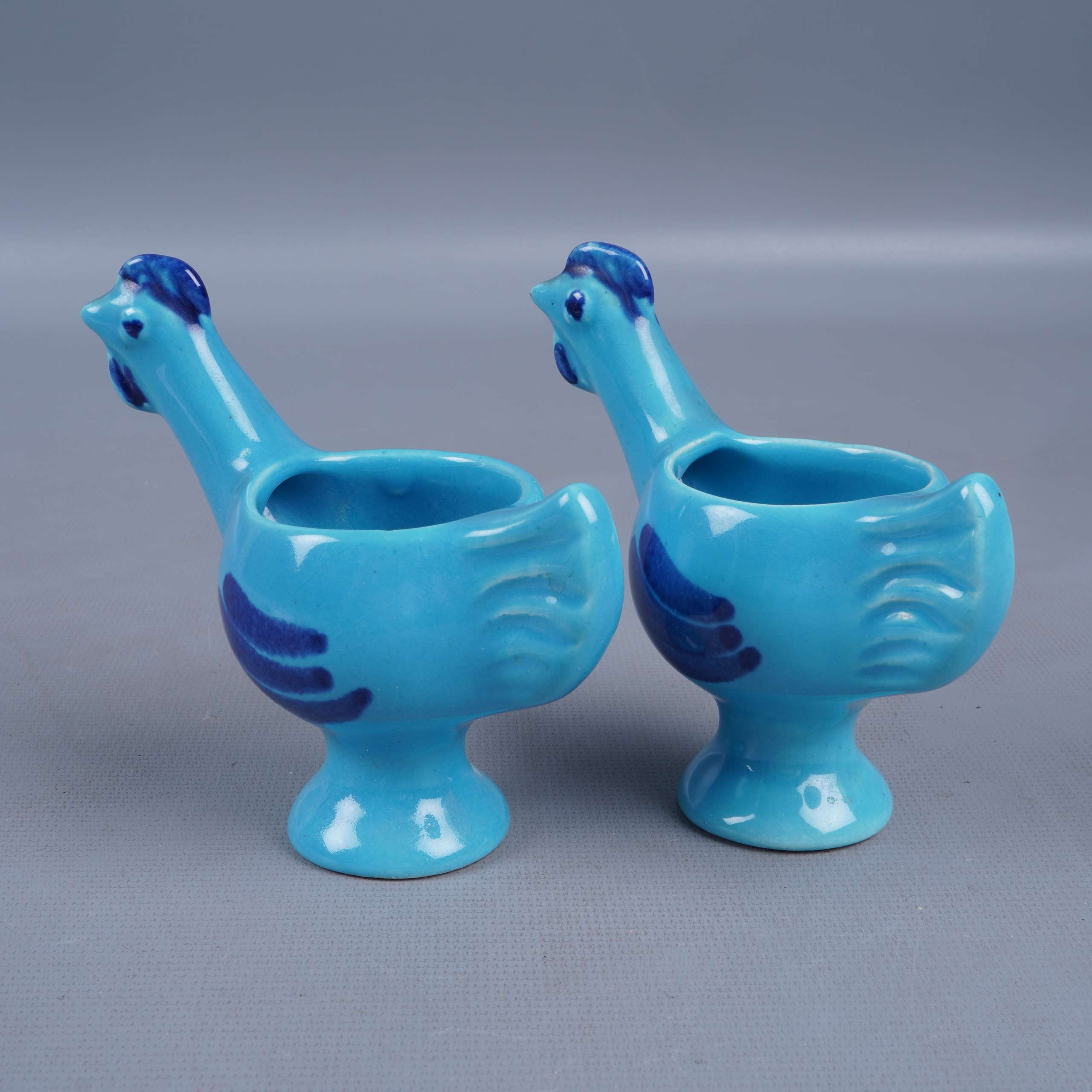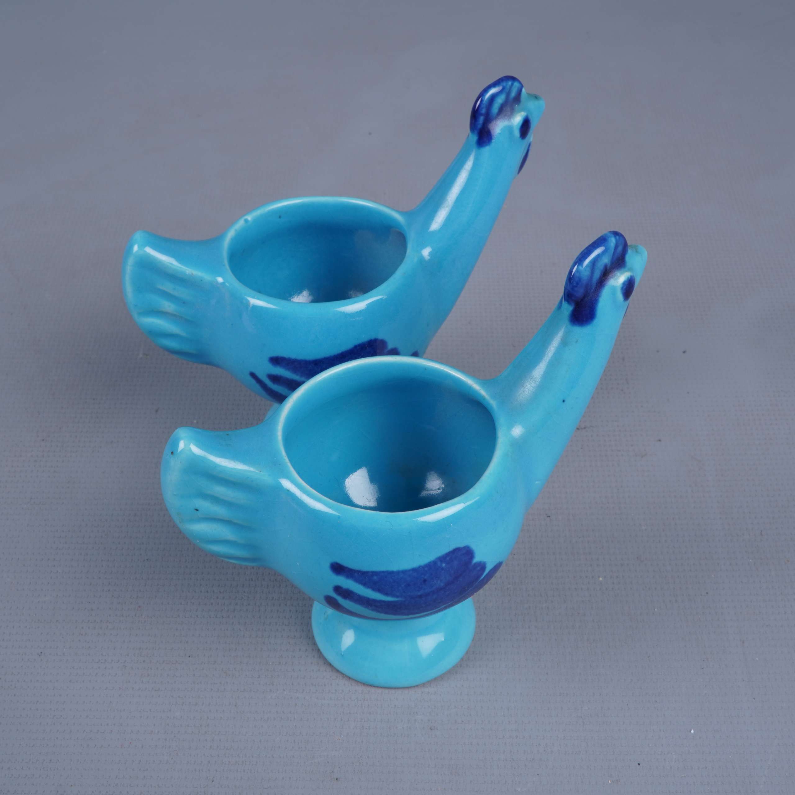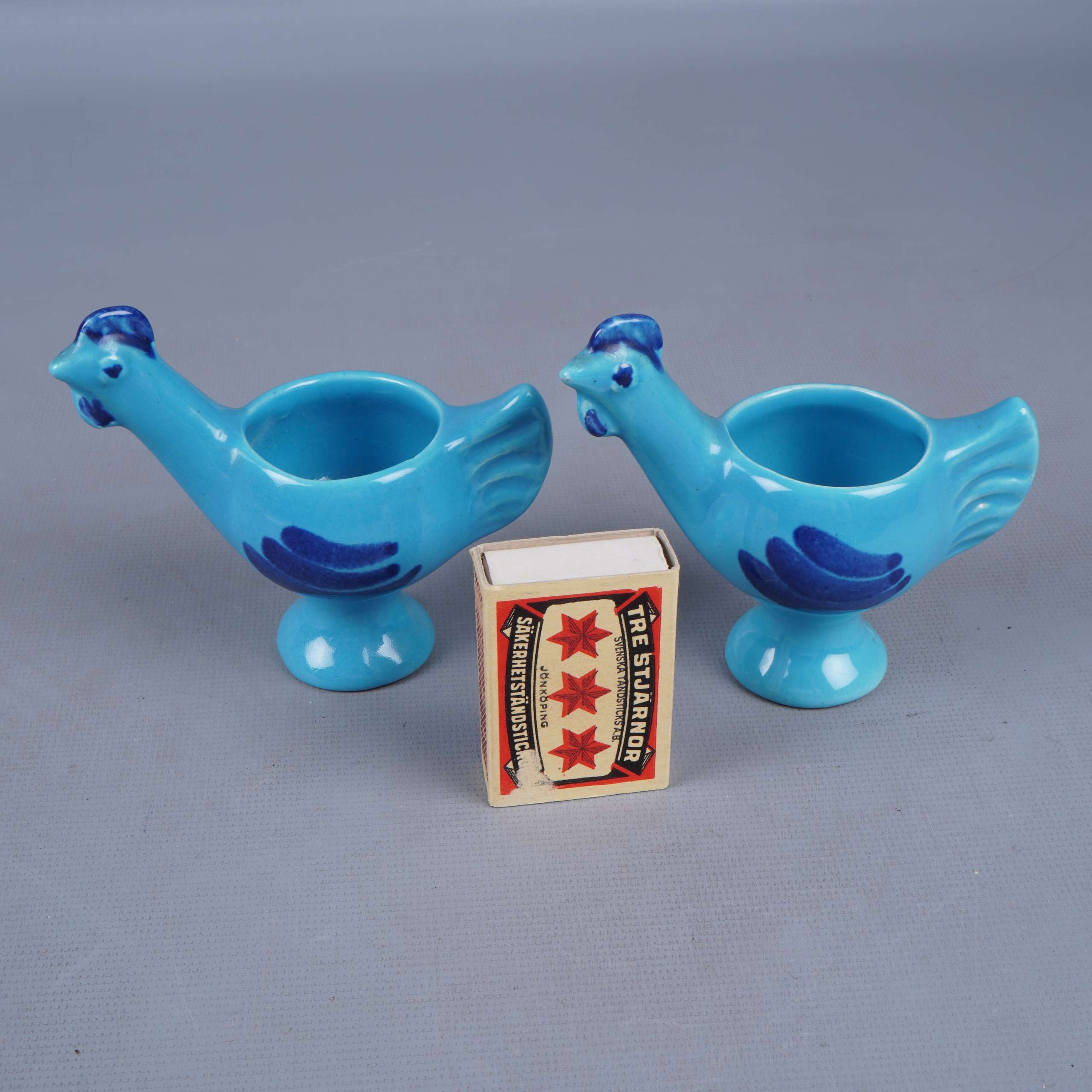 Två keramiska äggkoppar i fågelform 49 kr Product variation Antal st Beskrivning Två äggkoppar i keramik med charmig fågelform och livlig blå färg. Perfekt detalj på frukostbordet och en fin mix av lekfull design och retro-känsla. Släta ytor och stadigt rund fot för stabilitet. Visa all beskrivning Detaljer Höjd: 10 cmLängd: 10 cm Skick Mycket gott skick Produkten är sparsamt använd, är av fin kvalitet och ska inte ha några skador eller förslitningar. Läs mer om hur vi bedömer Färg Ljusblå Material Keramik Produkten är unik och finns enbart som 1 st i lager. Fri frakt på alla köp över 990 kr. 14 dagars ångerrät.