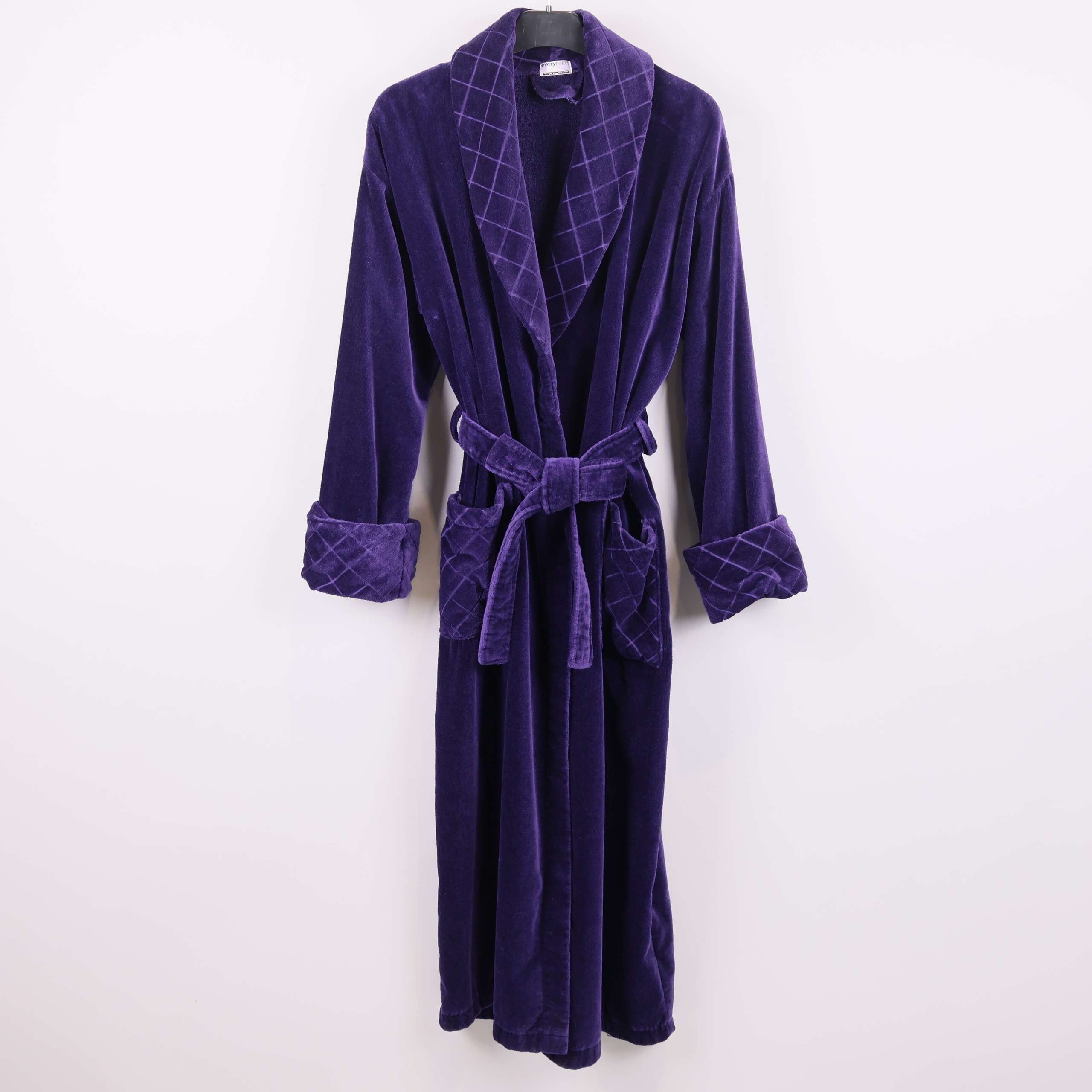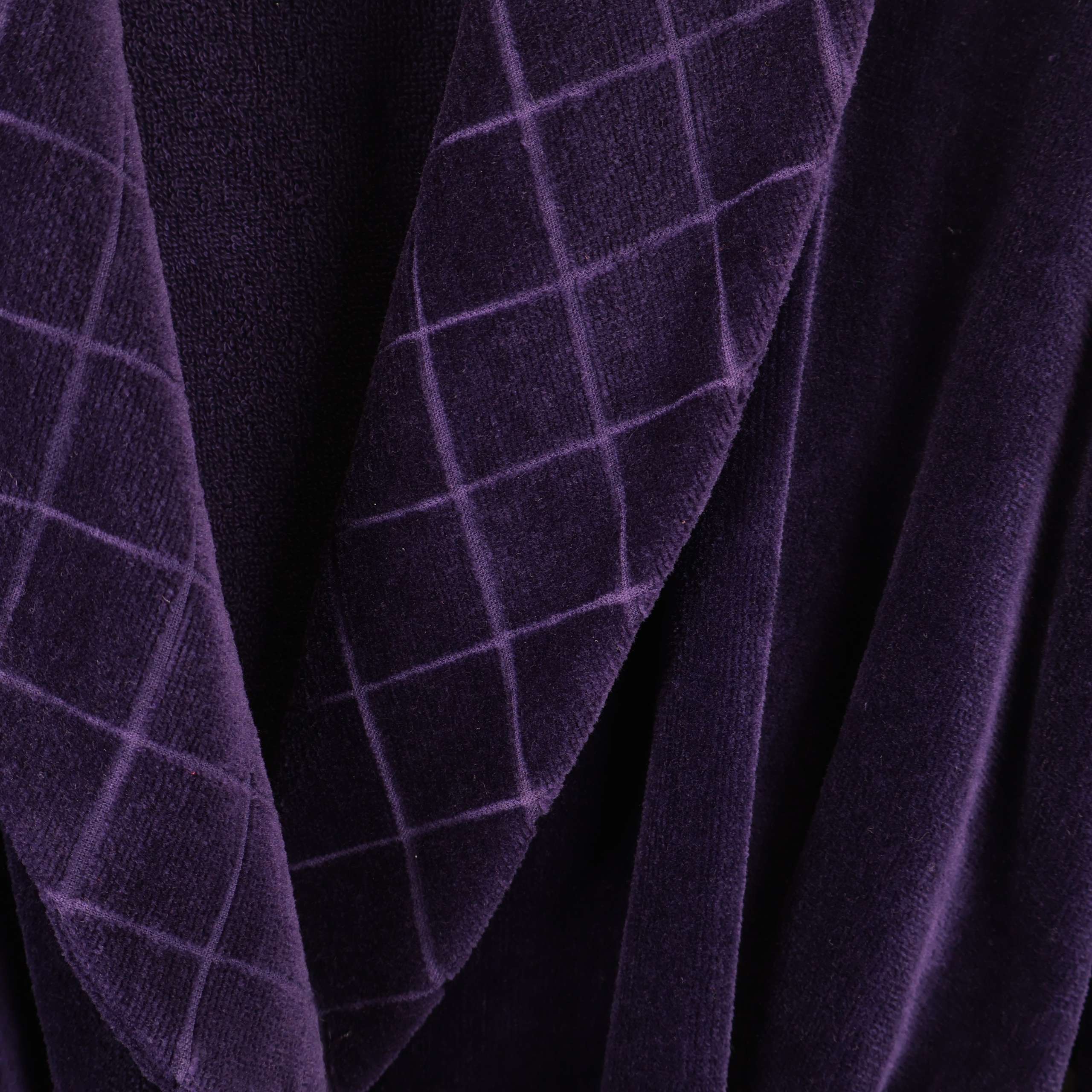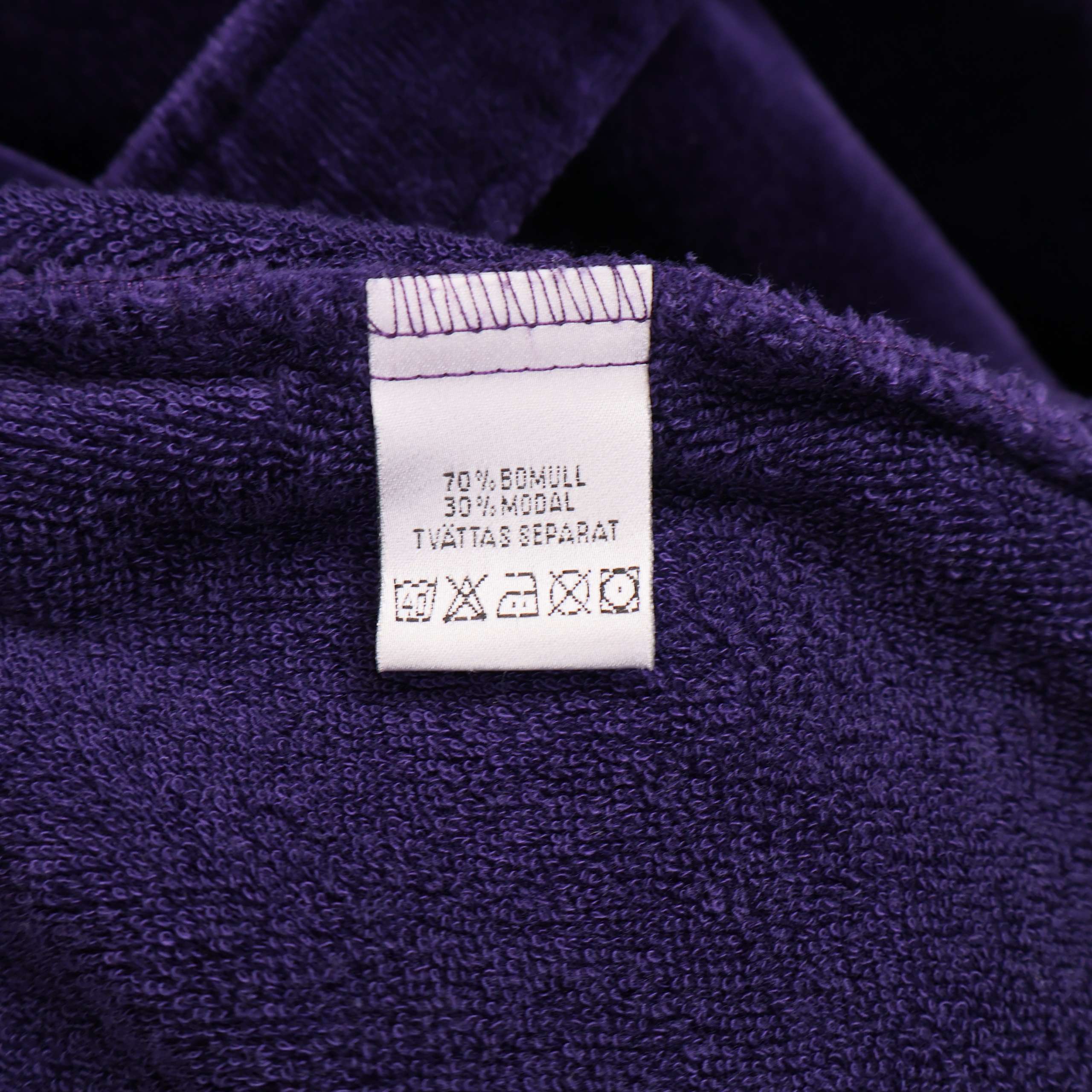 Härlig morgonrock i mjuk, lila frotté med elegant rutmönstrade slag och ärmslut. Rocken har två stora fickor framtill och midjebälte för justerbar passform. Frottématerialet ger en skön och omslutande känsla som passar alla. Normal passform i stl S/M.