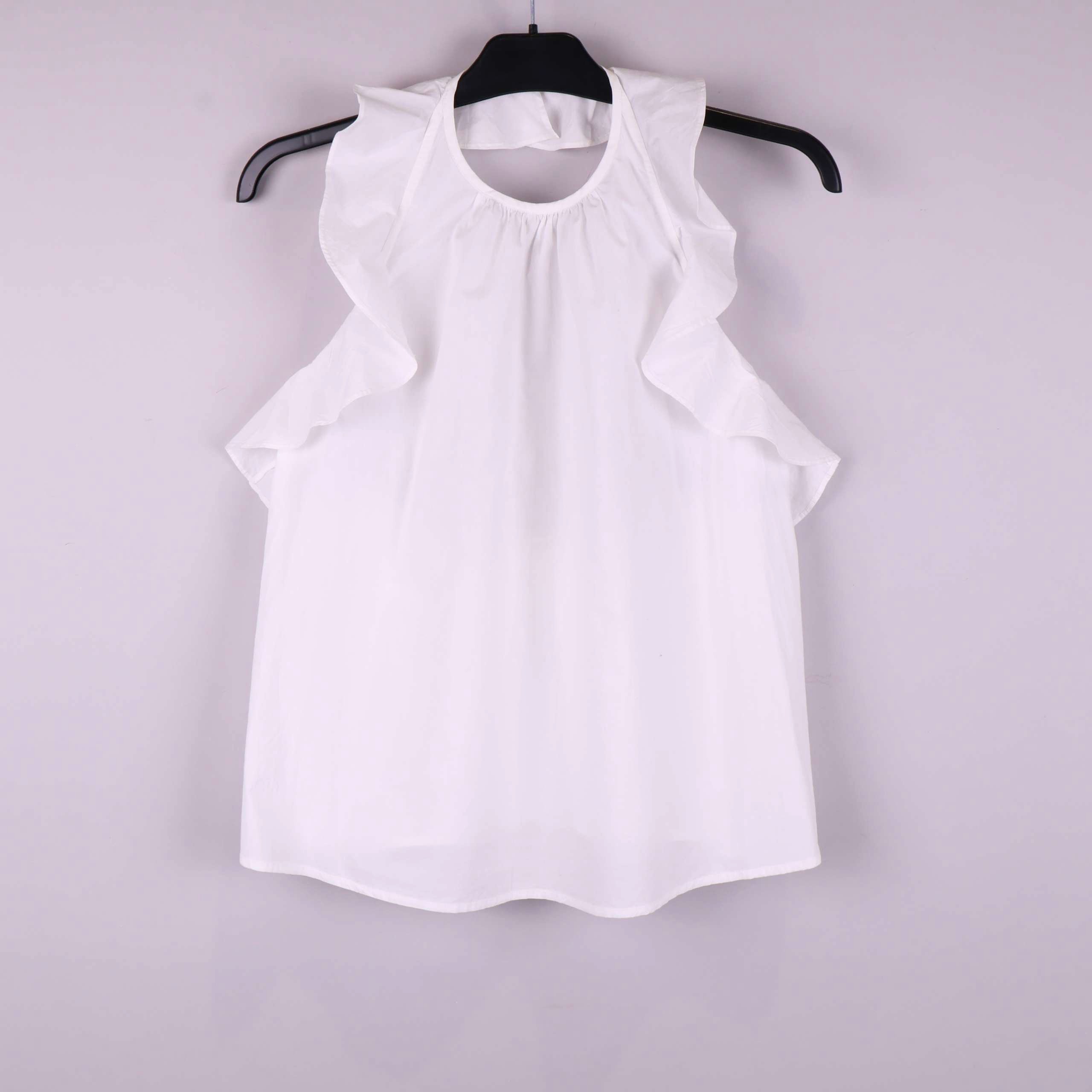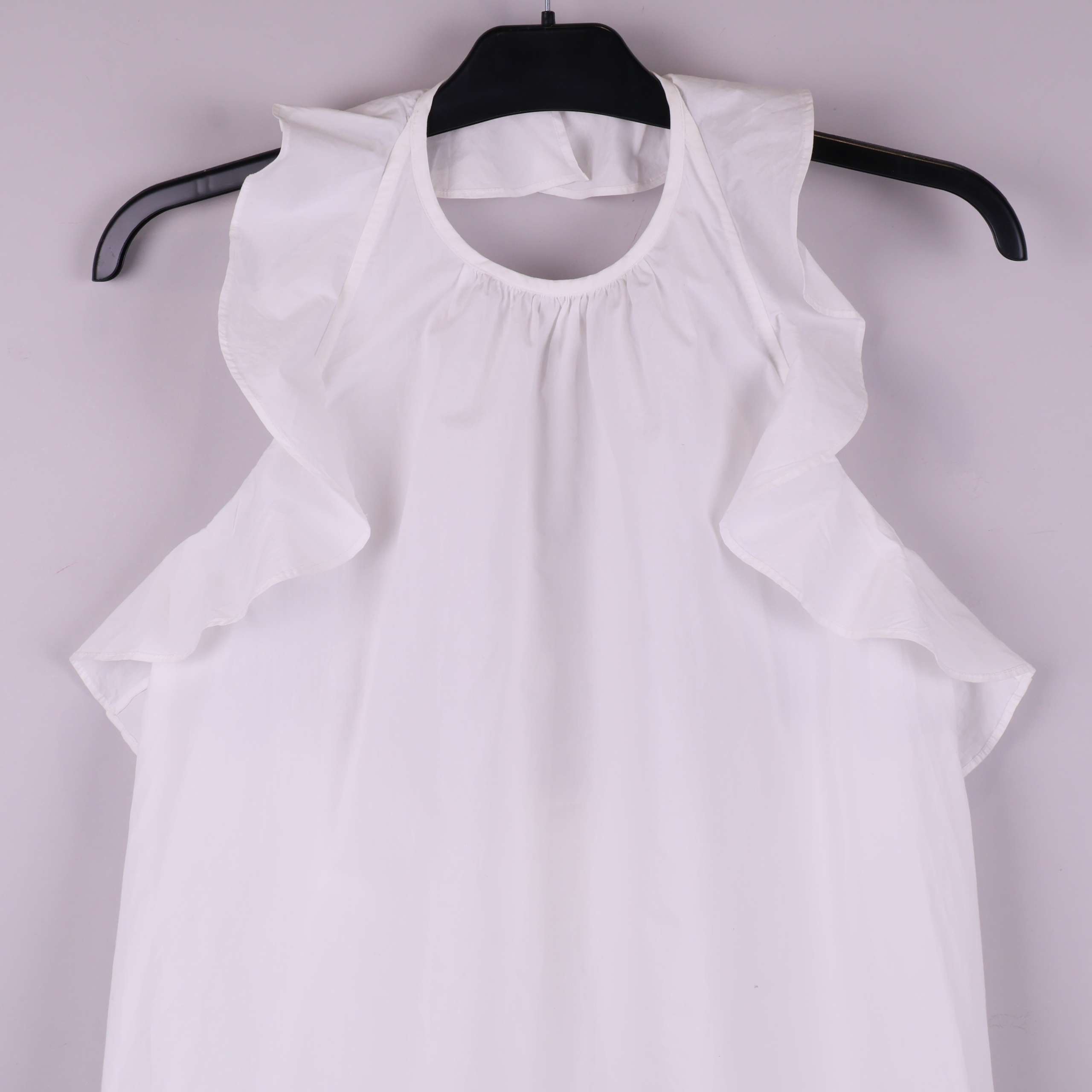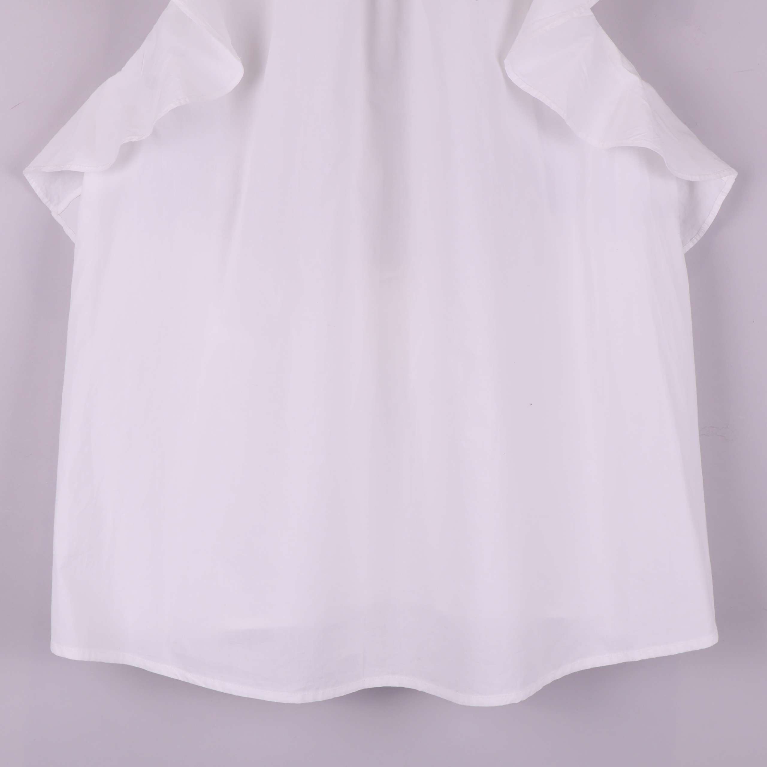 Stilren och luftig blus med volangdetaljer längs ärmhålen och lätt rundad hals. Den ljusa nyansen och de feminina volangerna ger ett fräscht och trendigt intryck. Mjukt vävt material som känns behagligt mot huden och passar till både jeans och kjol för en modern look.
