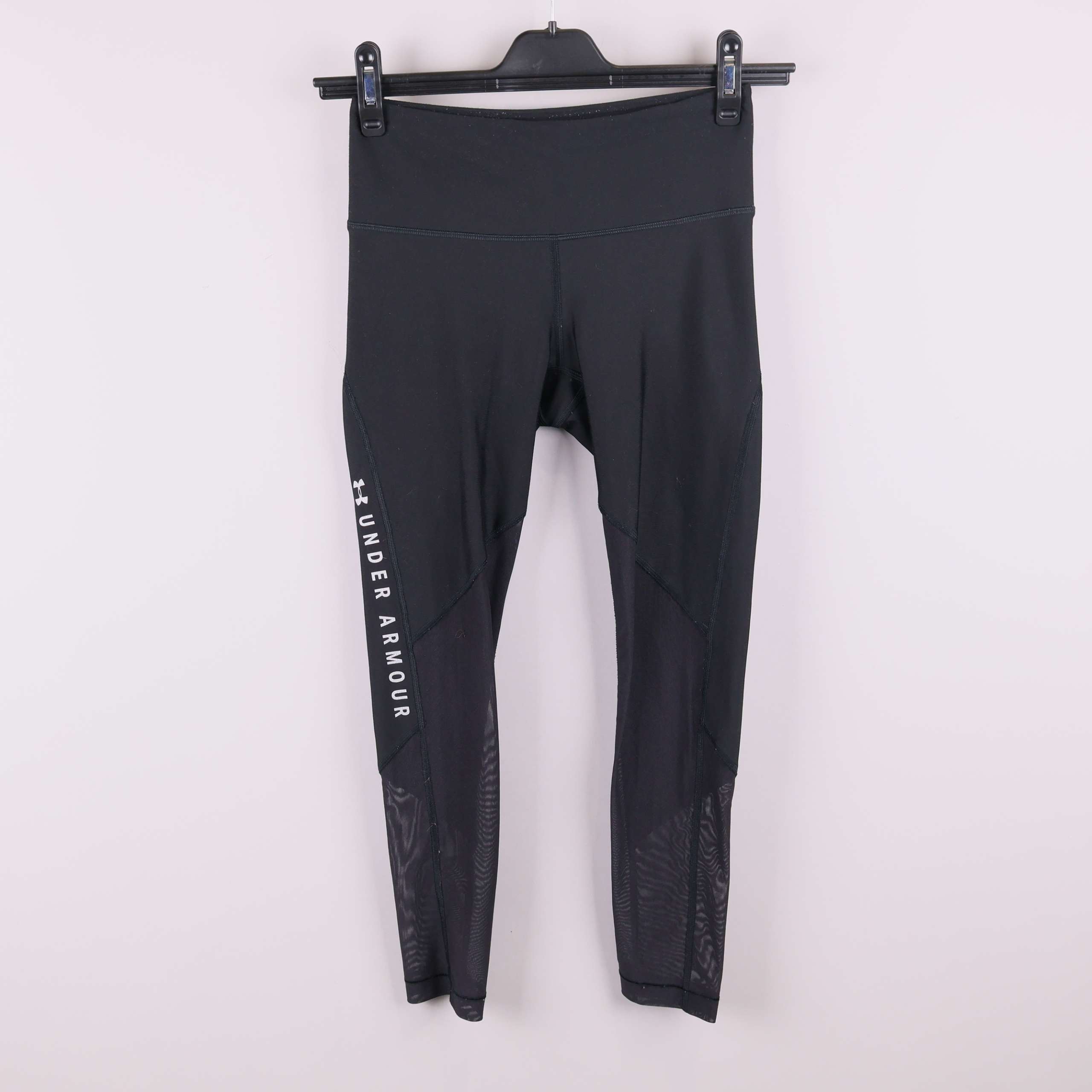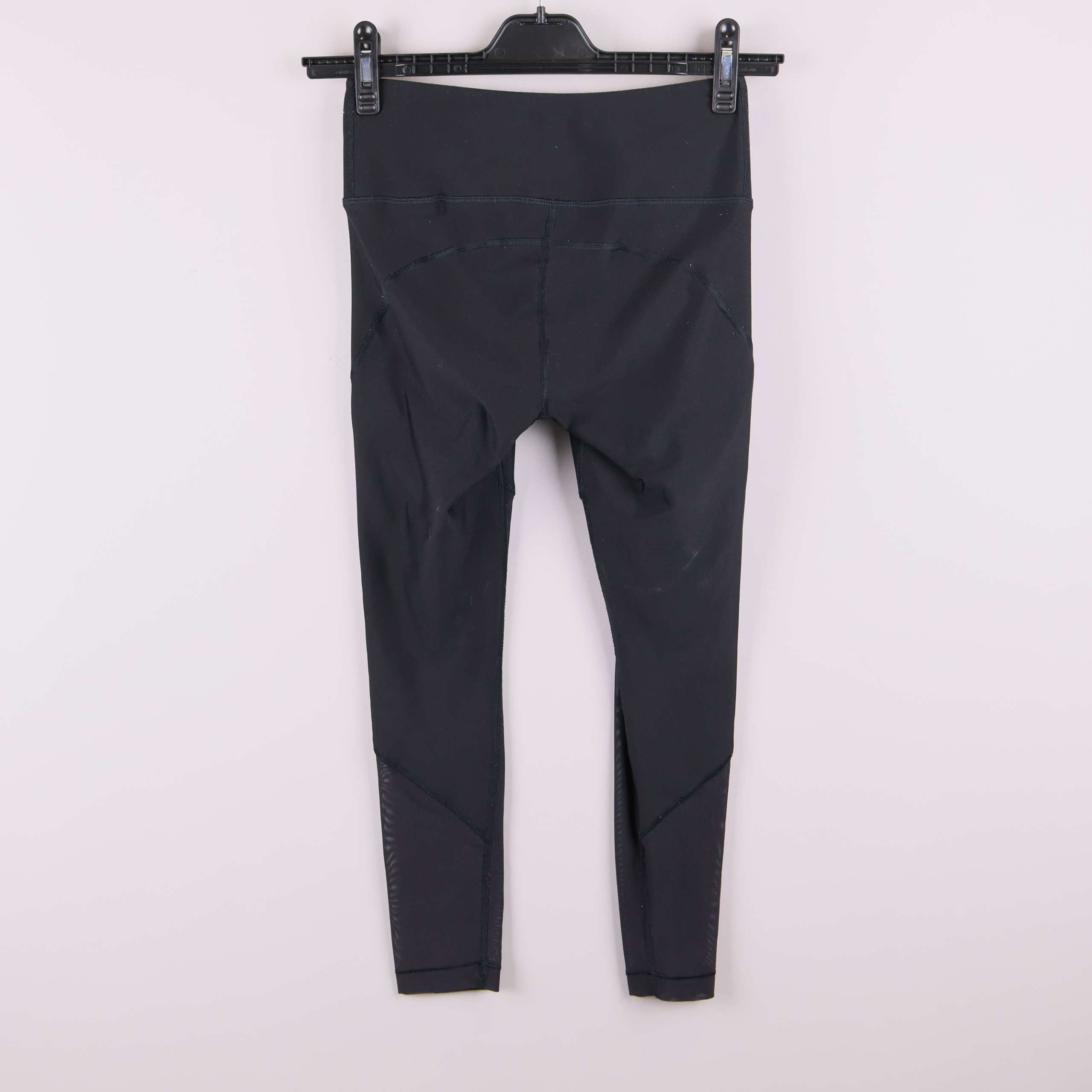 Smidiga träningstights i svart med stilrena meshpaneler längs benen och logotyp på sidan.