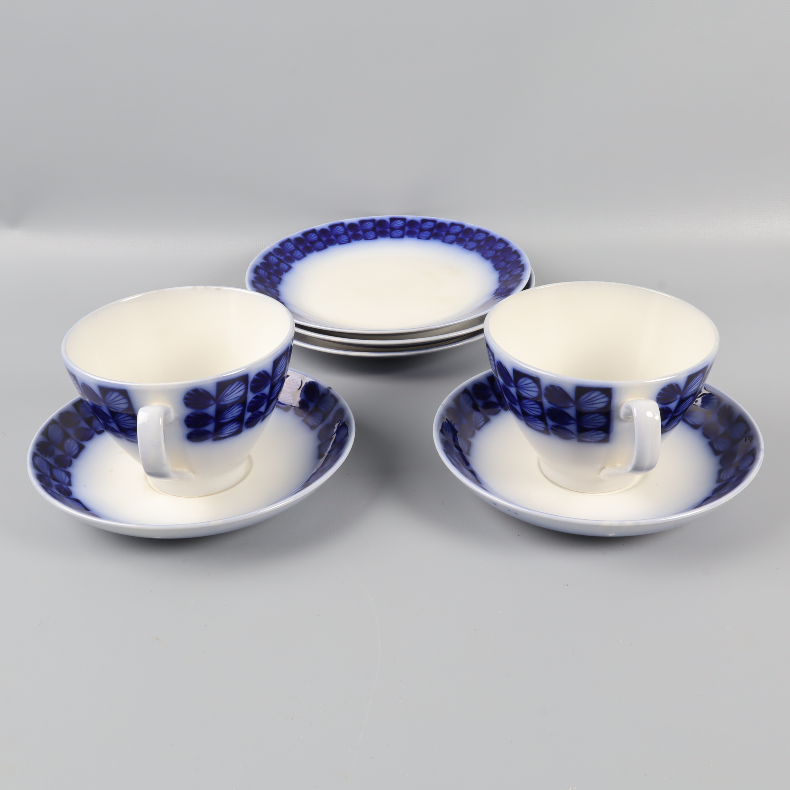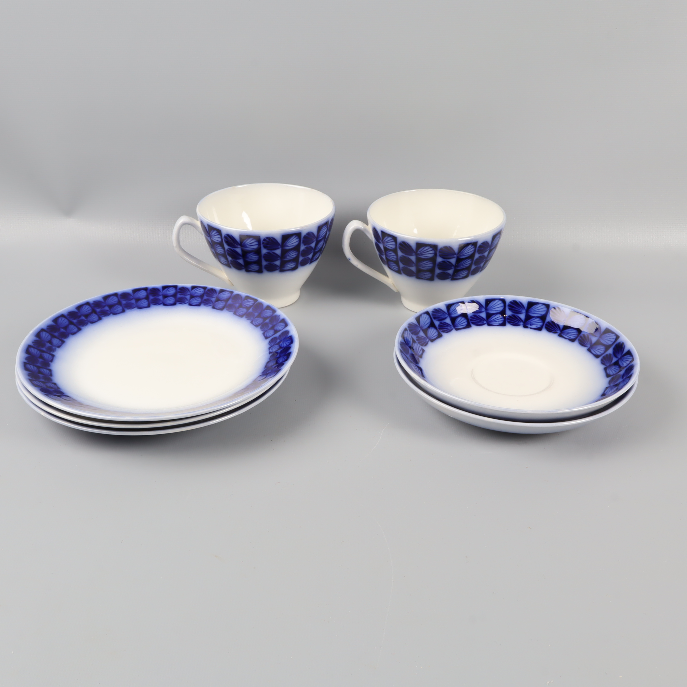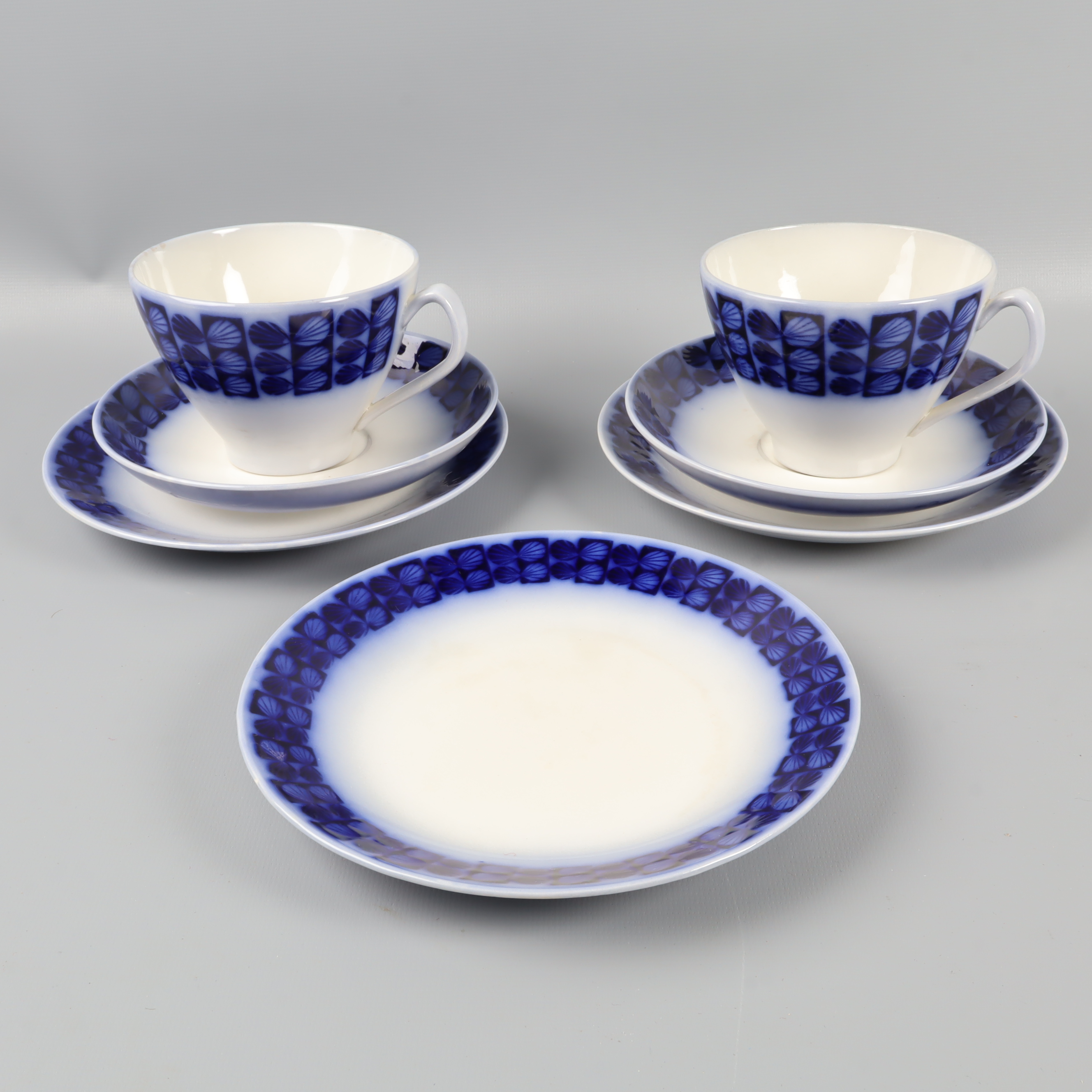 Upsala-Ekeby Gefle Uppsala Ekeby Berit Ternell kaffeservis 7 delar 299 kr Product variation Antal st Beskrivning Ett par klassiska tekoppar med tillhörande fat och assietter i vitt med blå dekor runt kanten. Setet har en tidlös design, perfekt för en stilren servering. Mjuka former och en lite vintage vibe ger en charmig känsla till din fikastund. Visa all beskrivning Detaljer Koppar Höjd: ca 8cm, Diameter: ca 10cmFat Diameter: ca 15cmAssietter Diameter: ca 17cm Övrigt: Fläckar (bild 4) Skick Använt skick Produkten har blivit använd och kan ha slitits eller ha mindre skador Läs mer om hur vi bedömer Färg Blå Material Porslin Varumärke Upsala-Ekeby Gefle Produkten är unik och finns enbart som 1 st i lager. Fri frakt på alla köp över 990 kr. 14 dagars ångerrät.