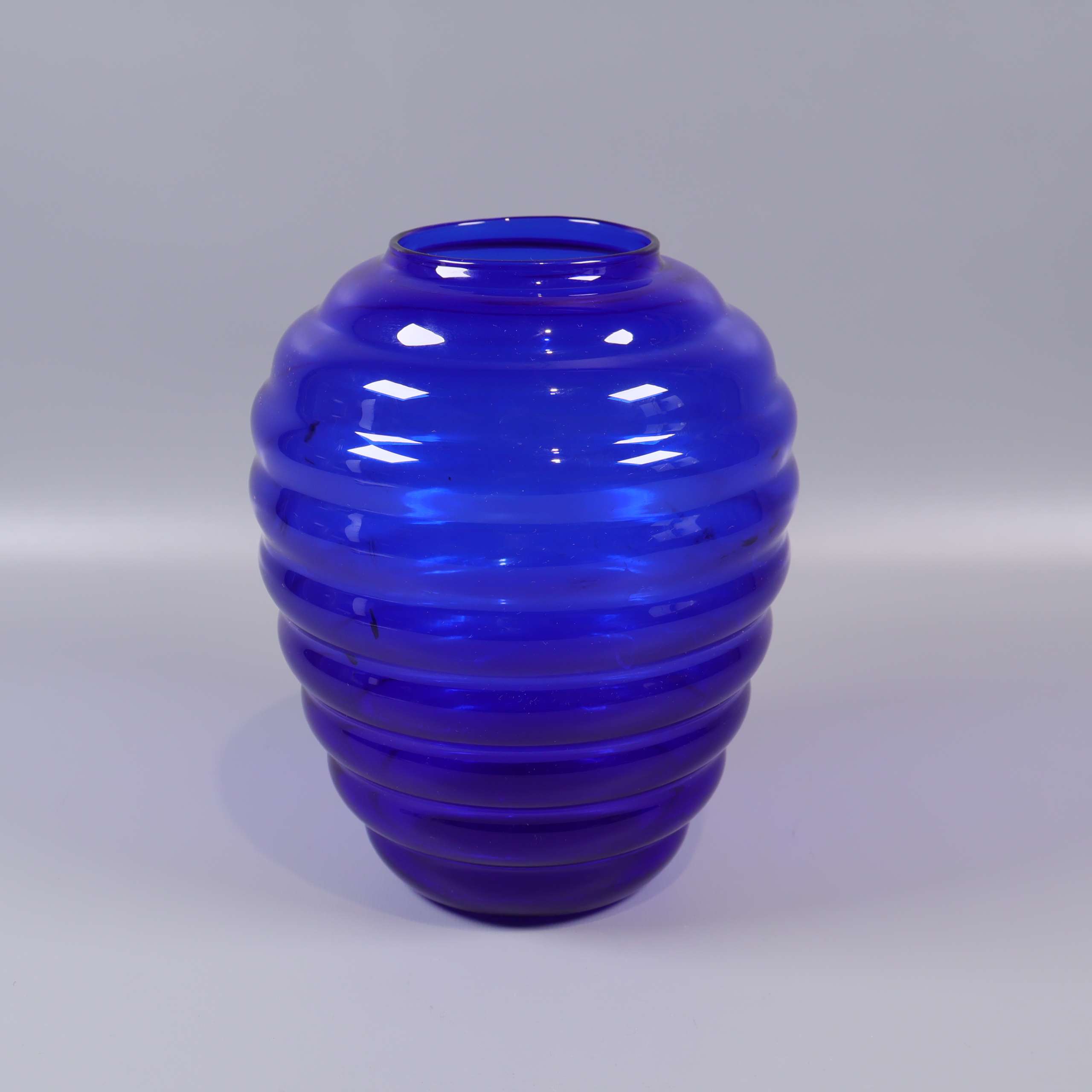 Vetreria Etrusca Vetreria Etrusca - Blå räfflad vas i glas 299 kr Product variation Antal st Beskrivning Stilren vas i intensivt blått glas med markerade räfflor runt om som ger ett unikt och modernt uttryck. Transparent finish och mjuka former för en lekfull men ändå elegant känsla.Övrigt: Det finns inget märke. Visa all beskrivning Skick Gott skick Produkten har använts men är av fin kvalitet, det kan förekomma mindre förslitningar. Läs mer om hur vi bedömer Dimensions Höjd: ca 21cm, Bredd: ca 21cm, Öppning: ca 8cm Färg Blå Material Glas Varumärke Vetreria Etrusca Produkten är unik och finns enbart som 1 st i lager. Fri frakt på alla köp över 990 kr. 14 dagars ångerrät.