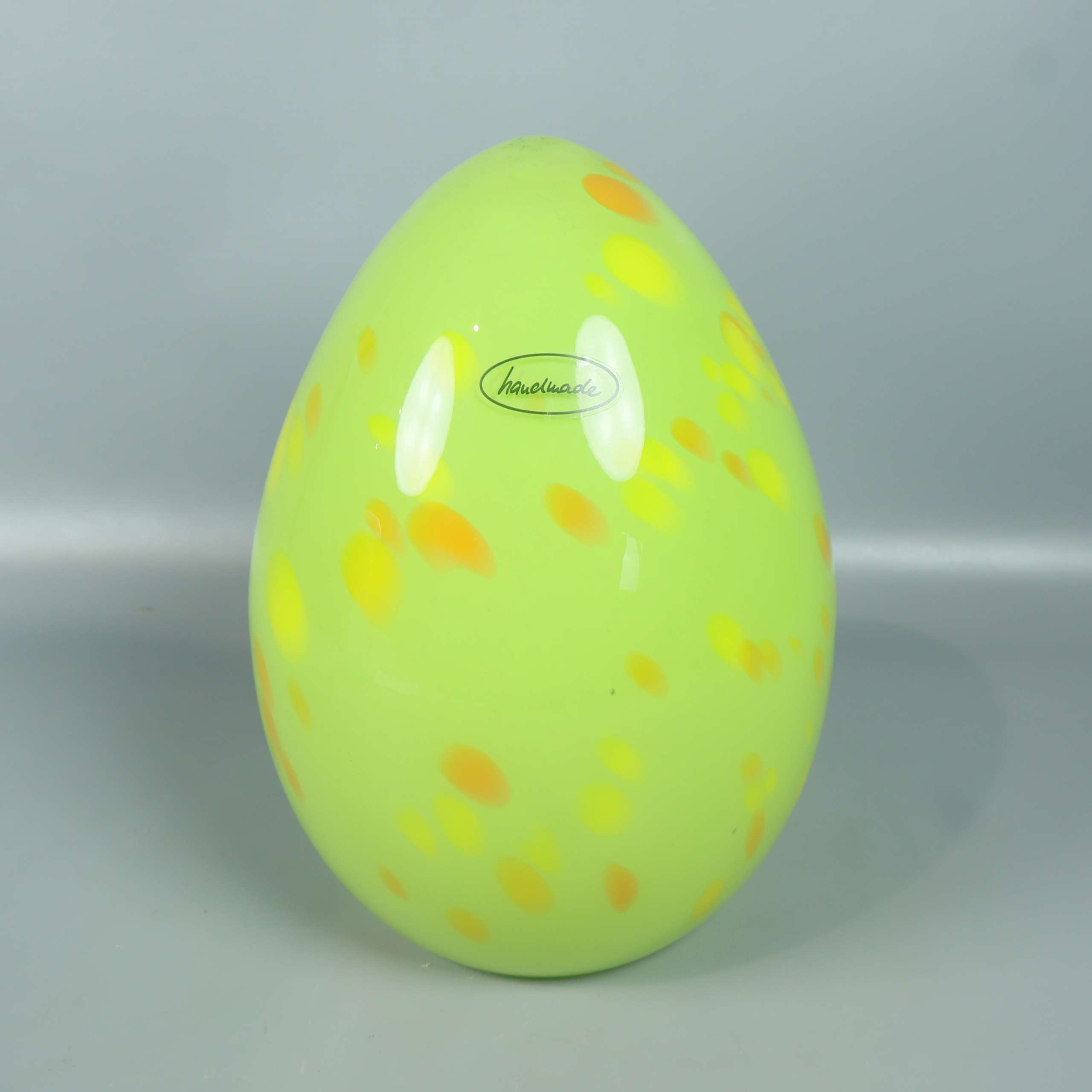 Färgglatt och unikt äggformat prydnadsföremål i glas med handgjord känsla. De gröna och gula tonerna med inslag av orange ger en lekfull look som passar både somsamlarobjekt och accent i hemmet. Märkt med Villeroy & Boch.