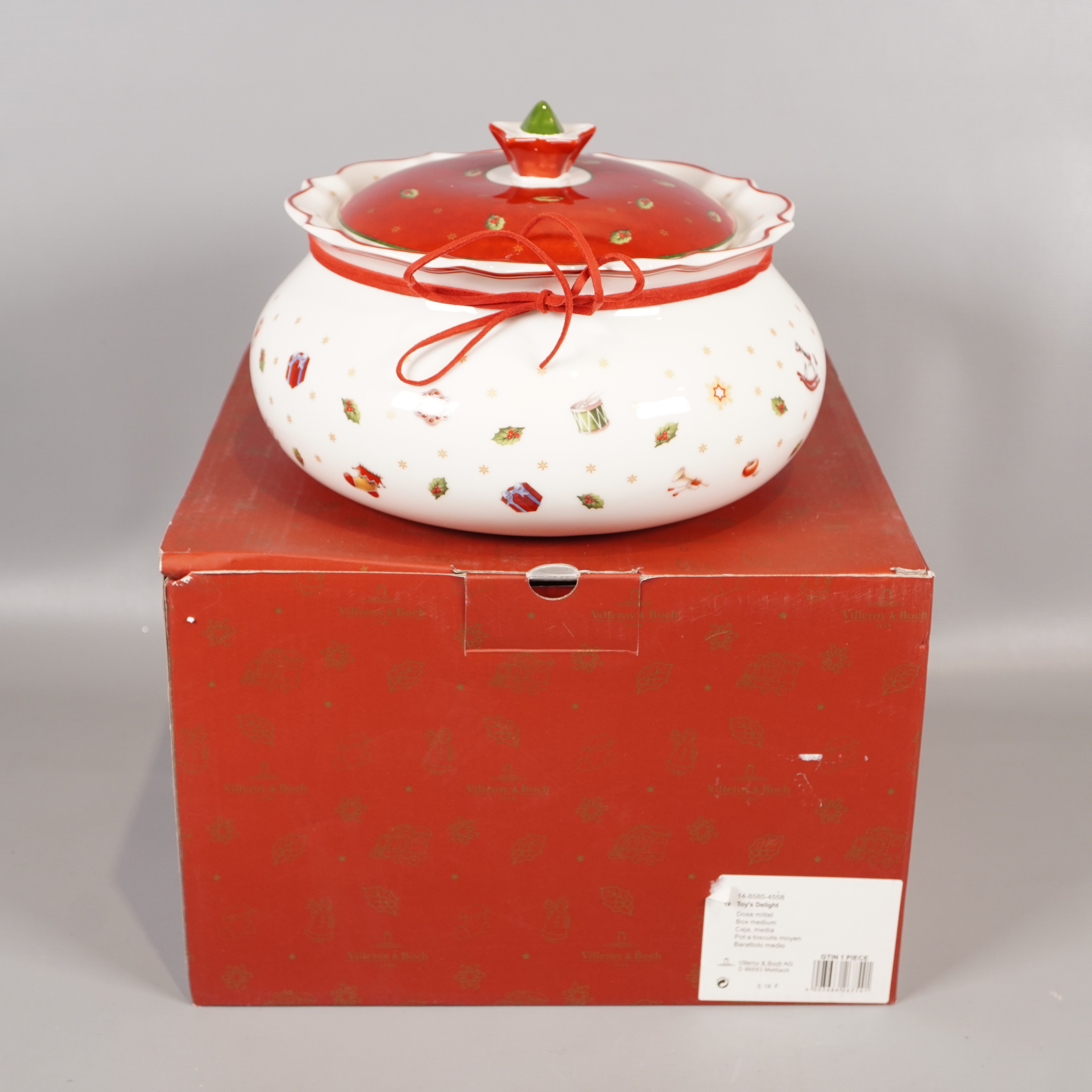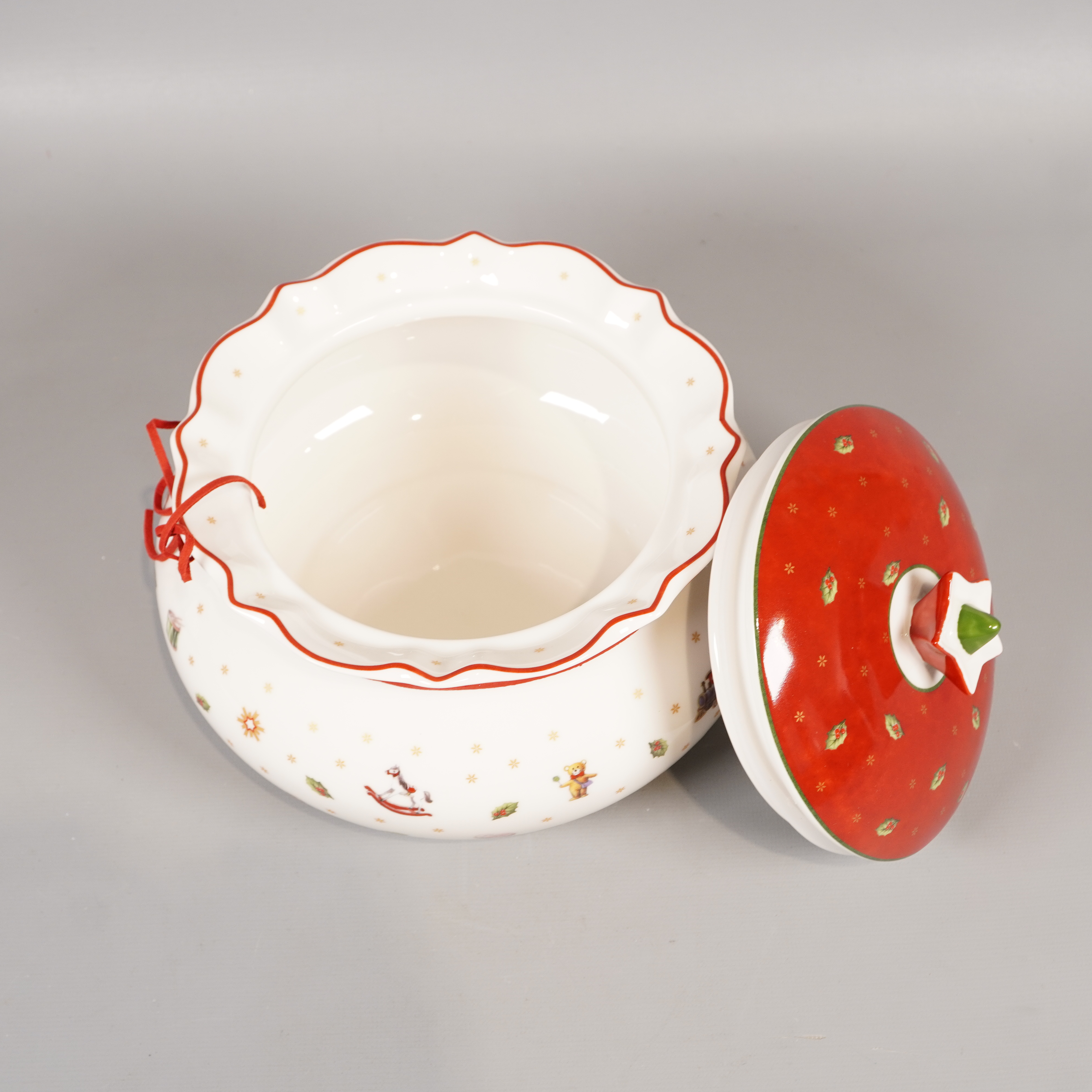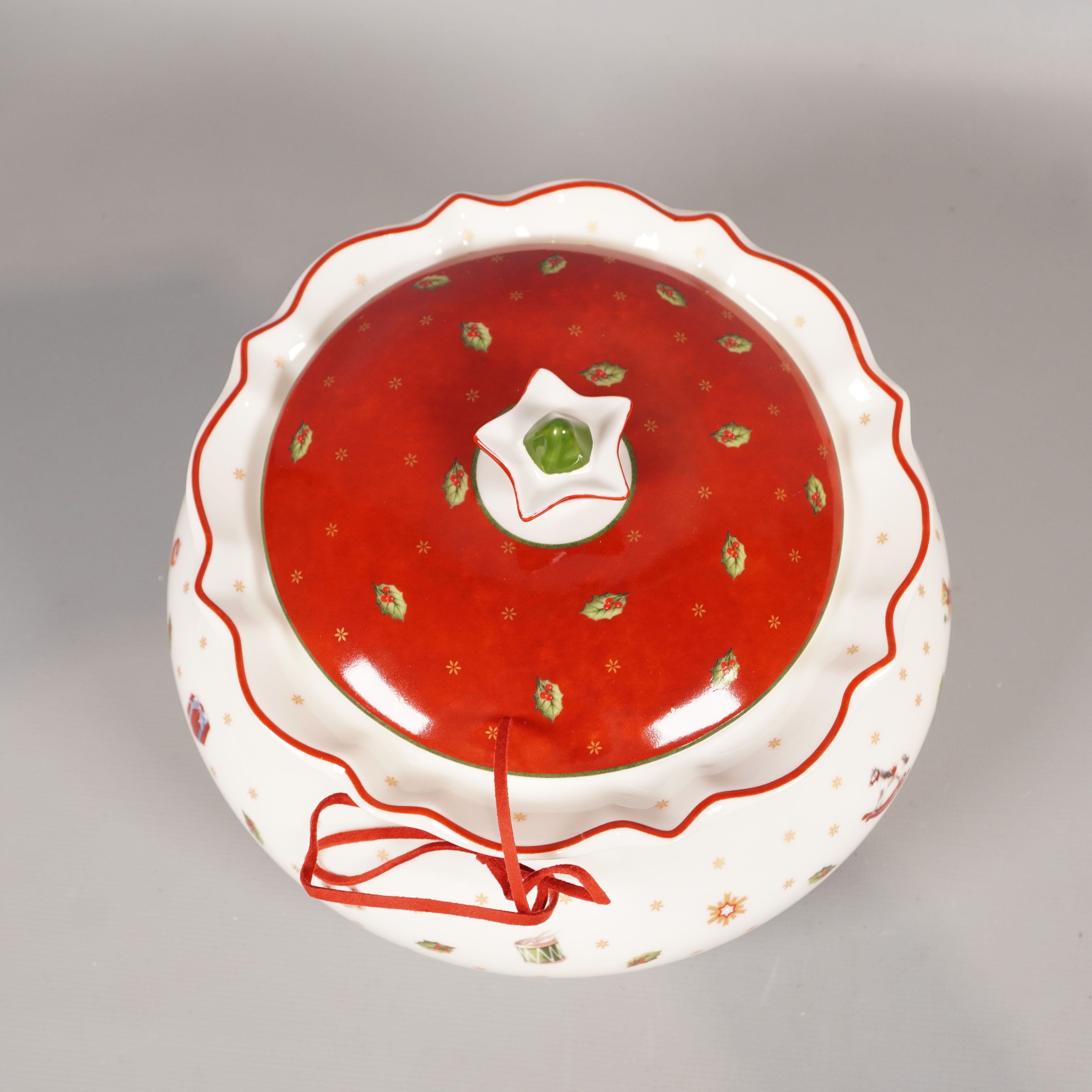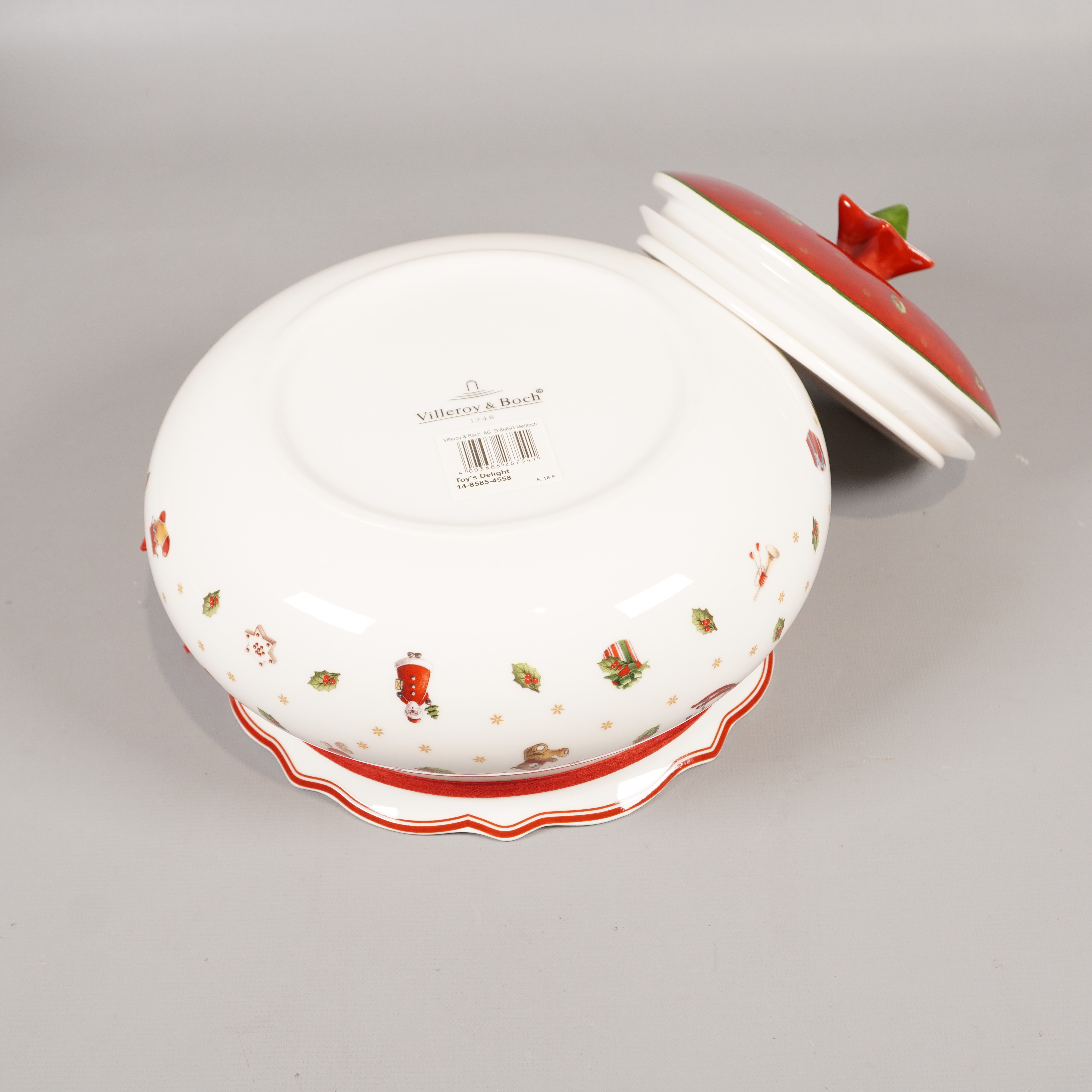 Villeroy & Boch Villeroy & Boch Toy's Delight dekorativ burk med lock 199 kr Product variation Antal st Beskrivning Charmig burk med lock i färgglad design med röd topp och lekfulla julmotiv runt om. Den vågiga kanten, de små detaljerna och snöreljan skapar en mysig och unik känsla. Visa all beskrivning Skick Nytt skick Produkten är som ny. Kan till och med ha orginalprislapp kvar eller ligga i originalförpackning. Läs mer om hur vi bedömer Dimensions Höjd: ca 14cm, Diameter: ca 21cm Färg Vit Material Porslin Varumärke Villeroy & Boch Produkten är unik och finns enbart som 1 st i lager. Fri frakt på alla köp över 990 kr. 14 dagars ångerrät.