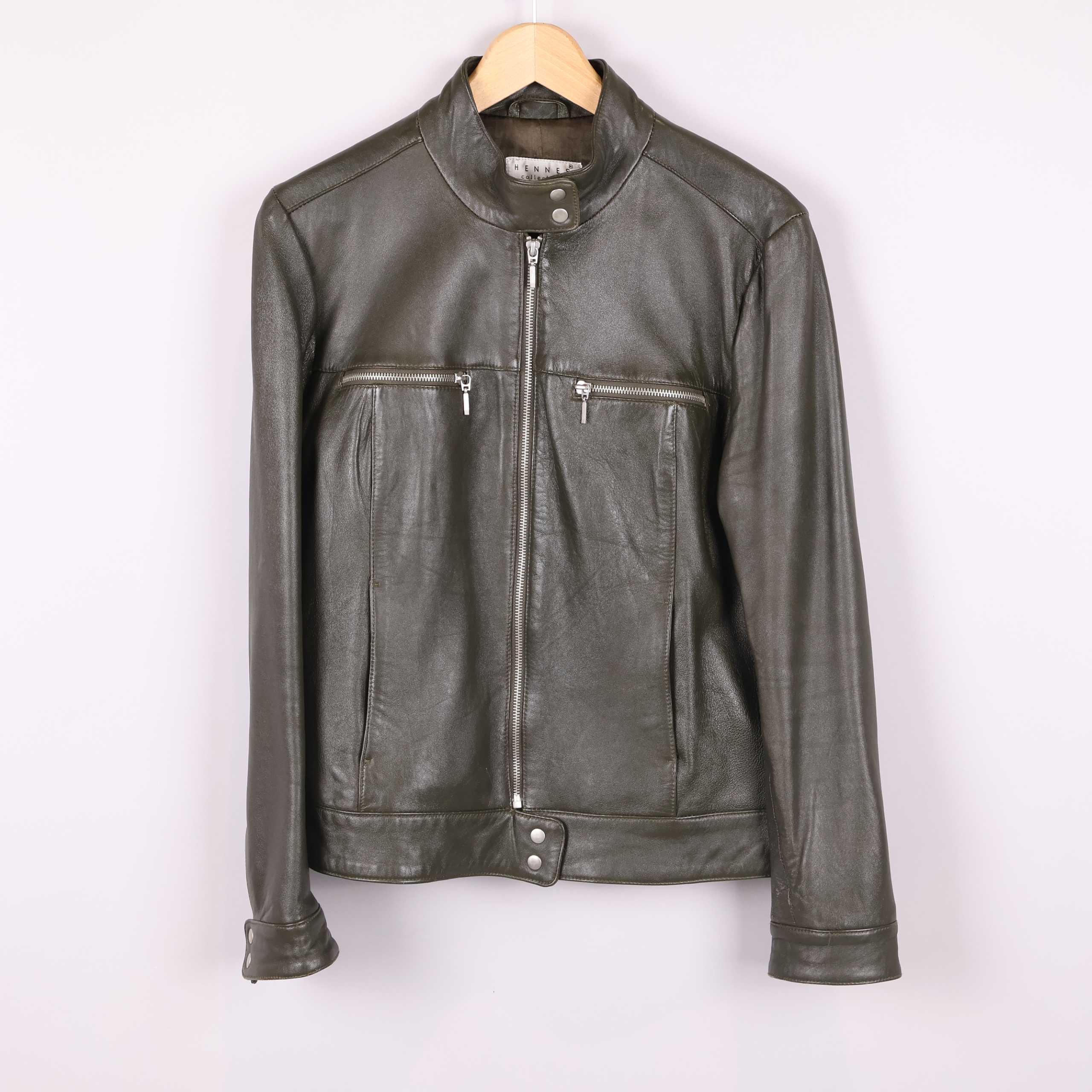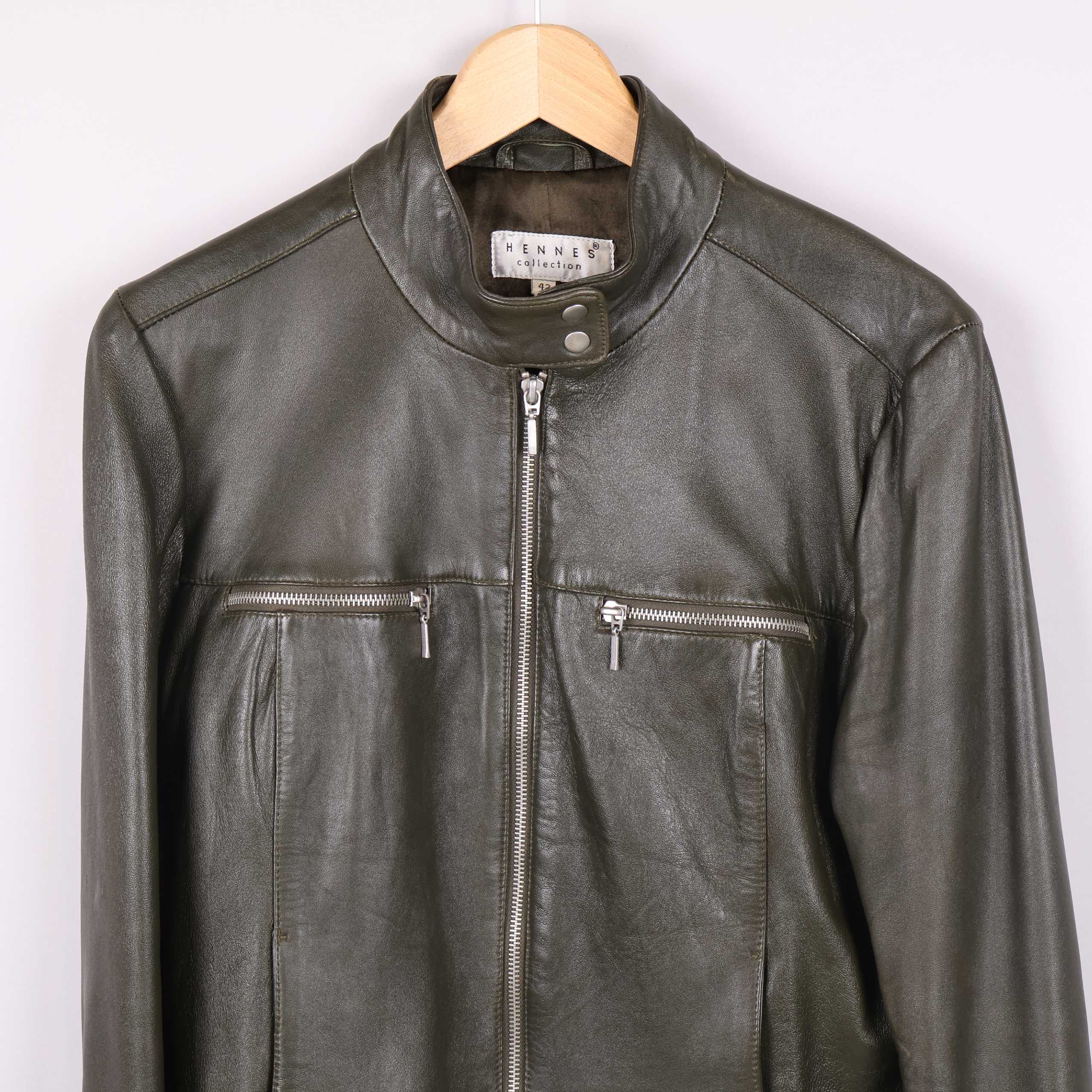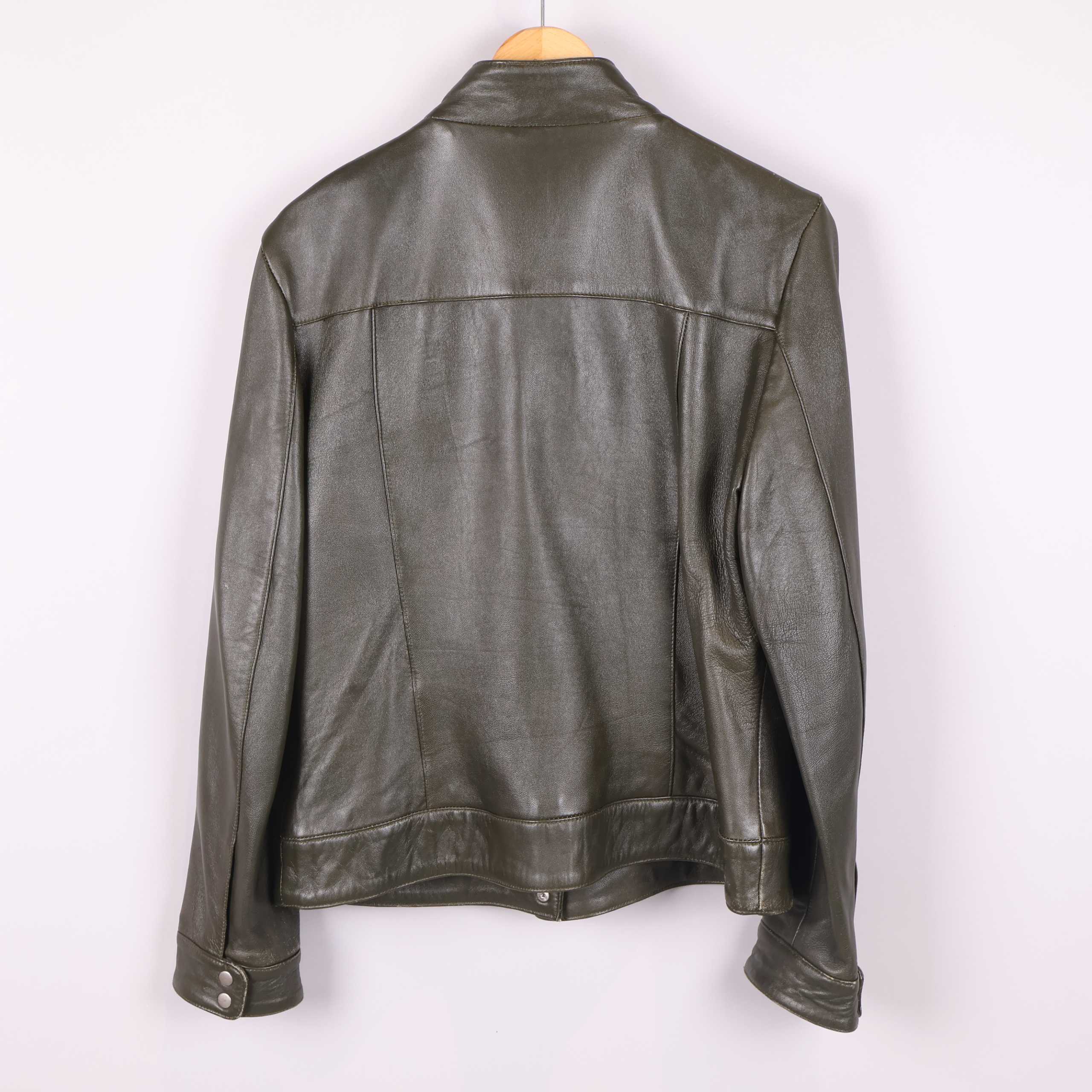 Vintageinspirerad läderjacka med ståkrage, dragkedja fram och knäppning vid halsen. Jackan har två bröstfickor med dragkedja och justerbara ärmslut med tryckknappar. Slät finish och diskreta sömdetaljer ger ett rent uttryck och en cool vibe. Fodrad insida för ökad komfort.