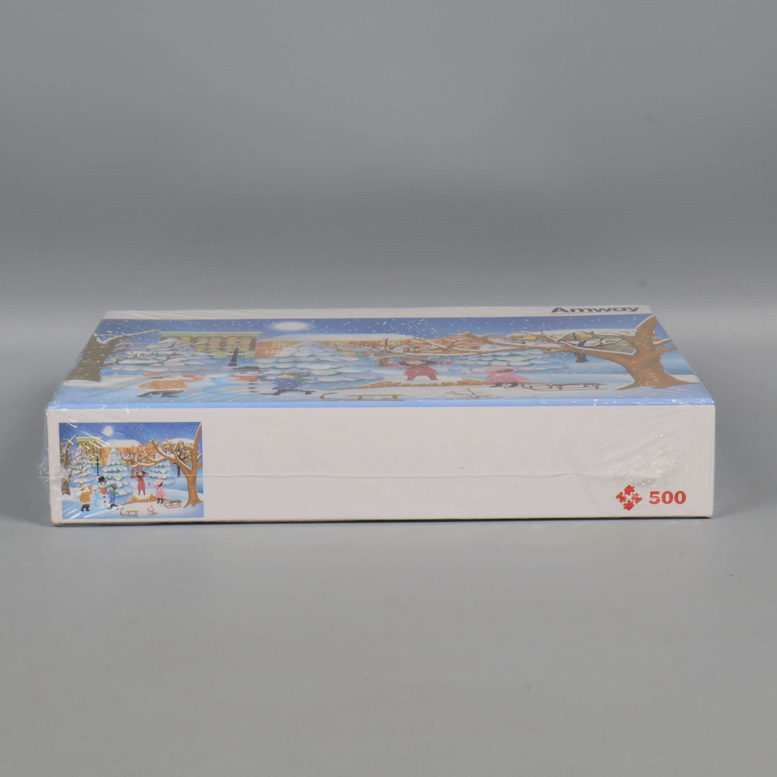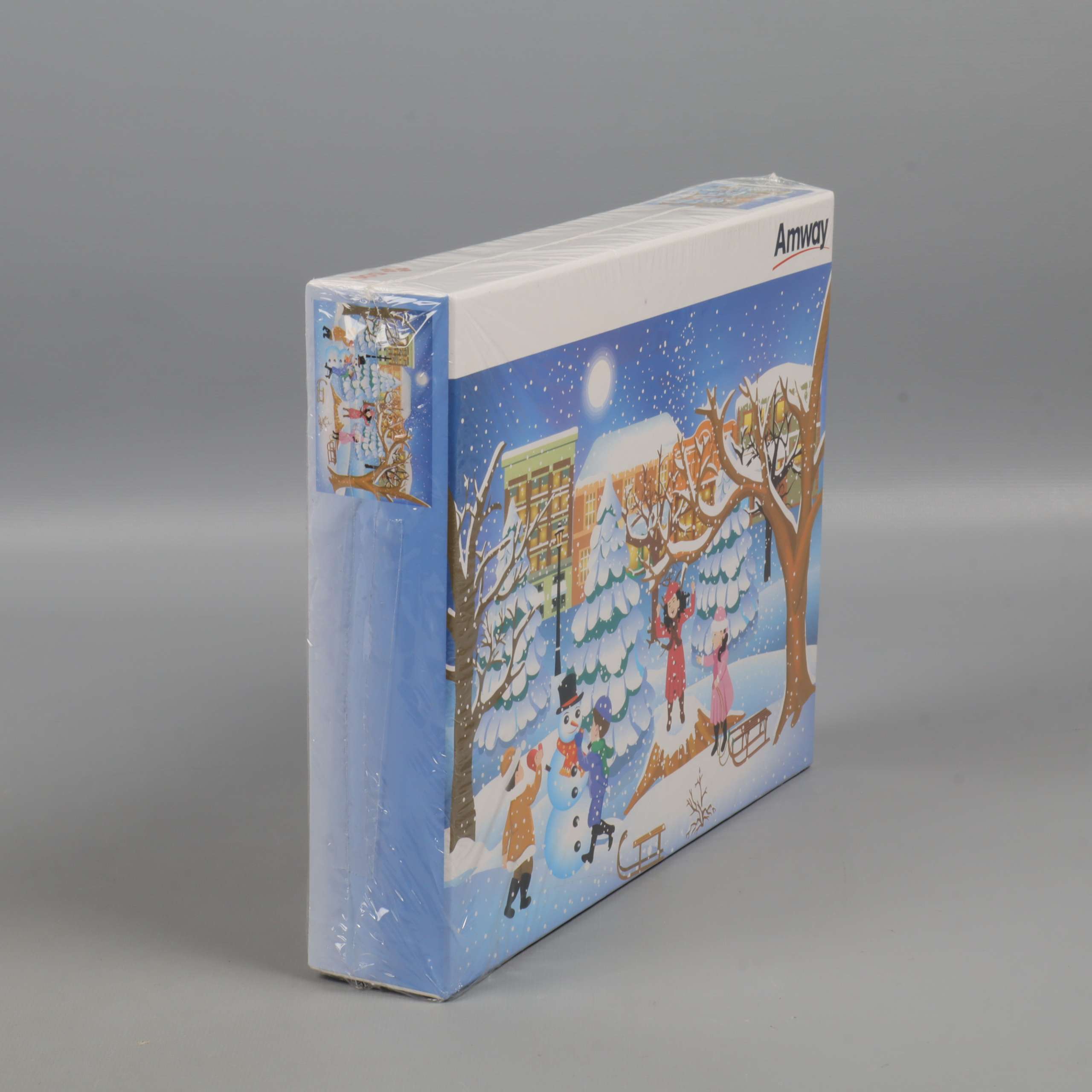 Fin vinterpussel med ett lekfullt stadsmotiv där barn bygger snögubbe, åker pulka och njuter av snön under en stjärnklar himmel. Illustrationen har en varm och inbjudande känsla med klara färger och mysiga detaljer. Perfekt för dig som gillar pussel och vackra vinterbilder.