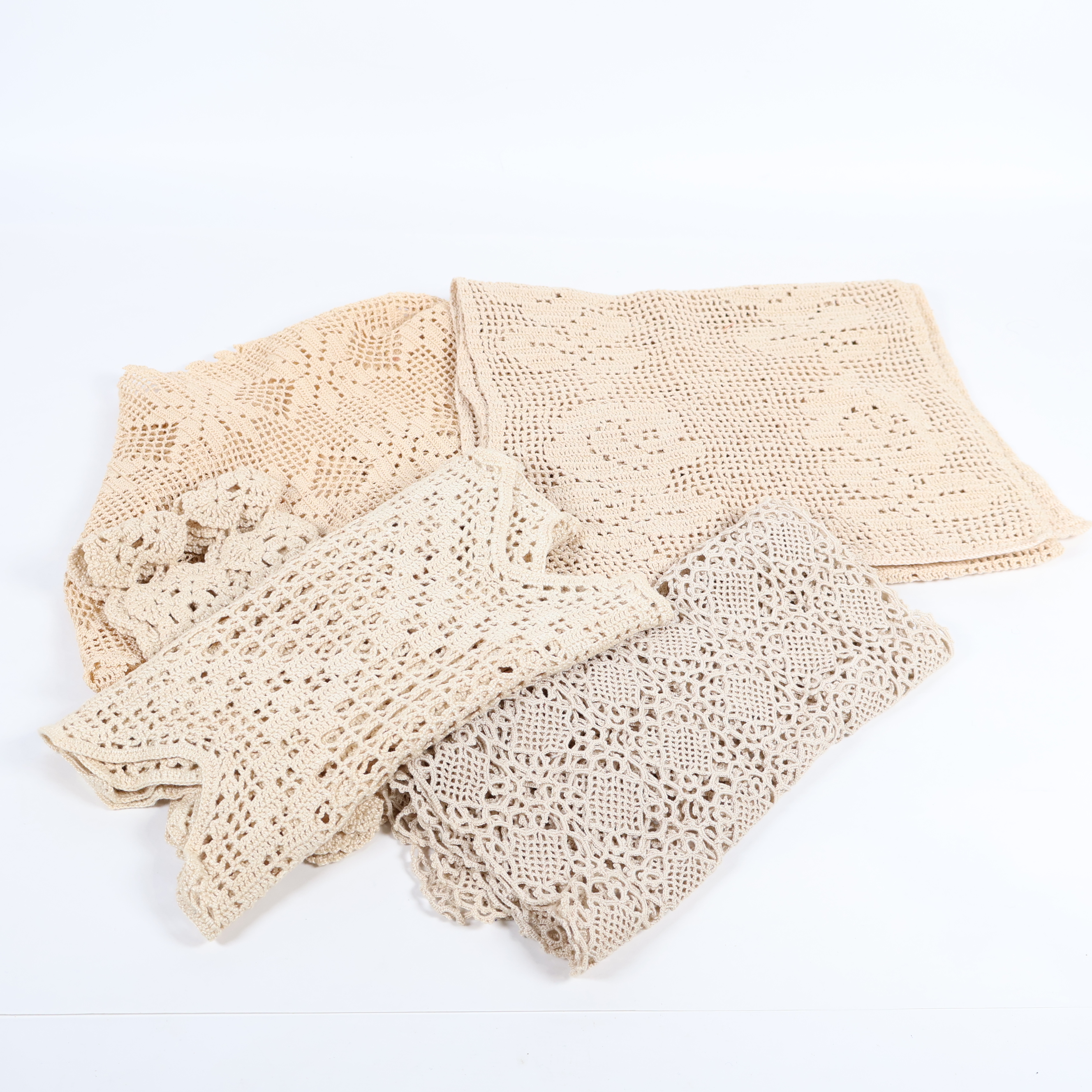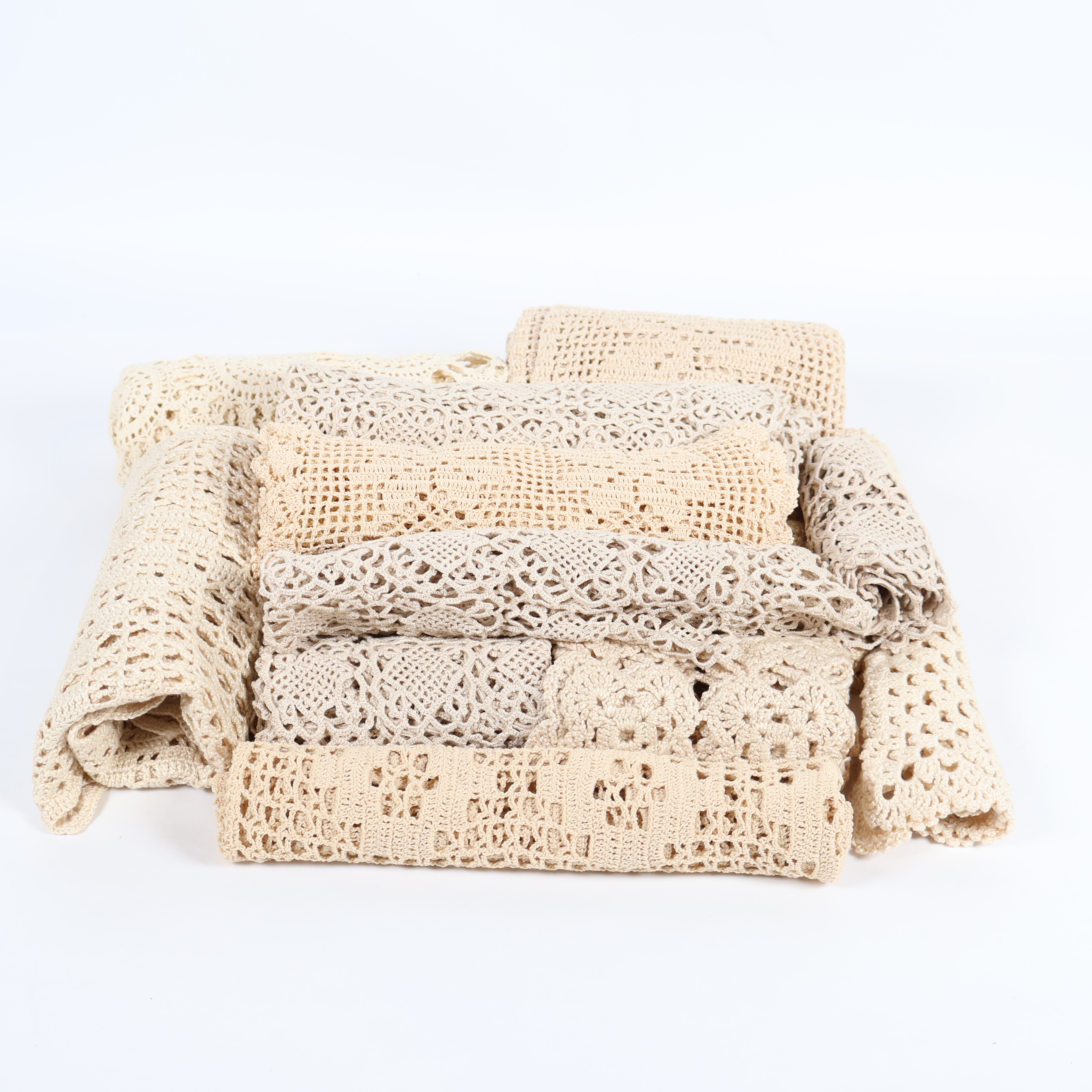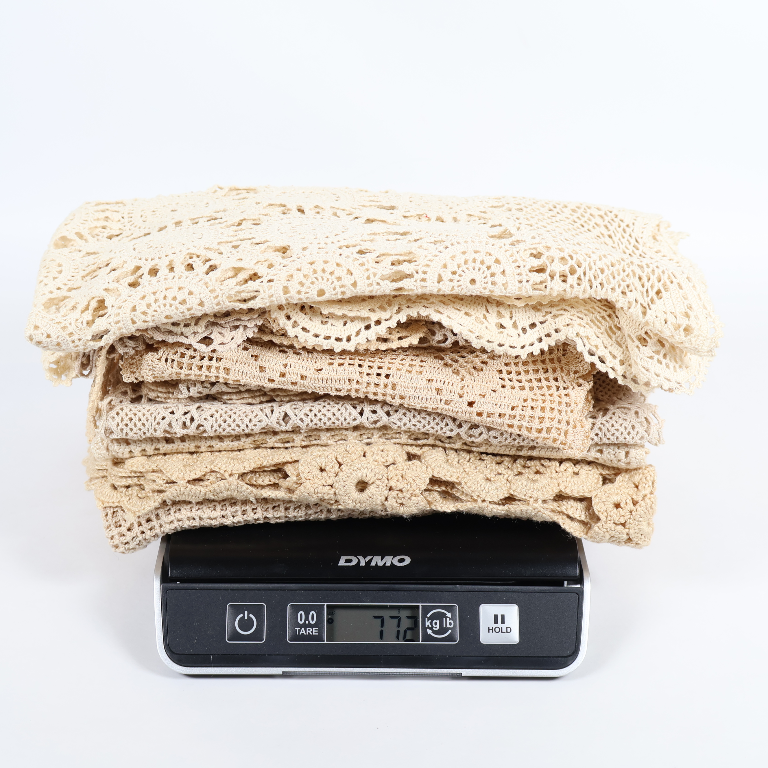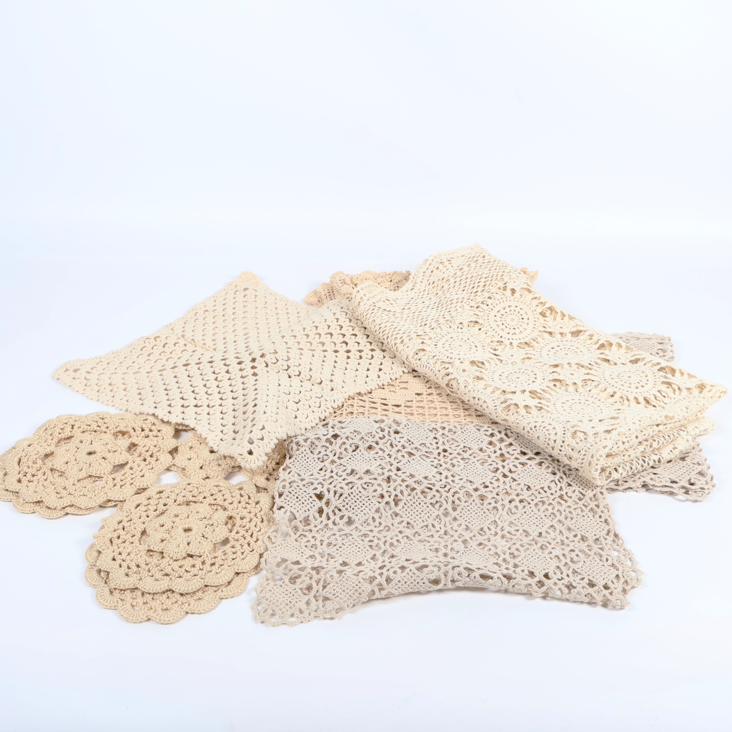 Fint paket med virkade spetsdukar i olika mönster och former som ger en charmig, vintage känsla till hemmet. Varma beige och naturvita toner ger en mjuk och harmonisk look. Perfekt för dig som gillar unika detaljer till både vardag och fest – varje duk har sin egen karaktär och hantverkskänsla.