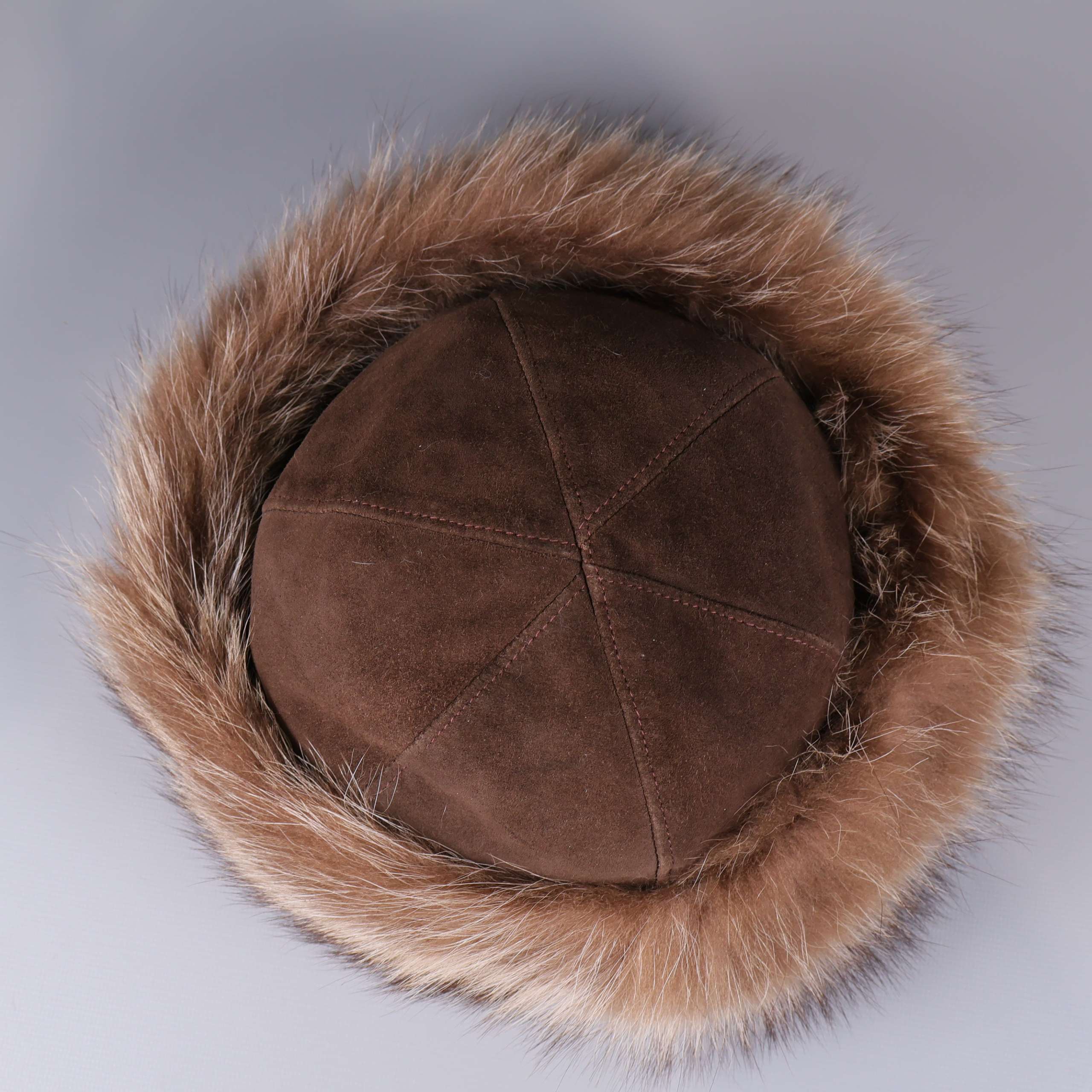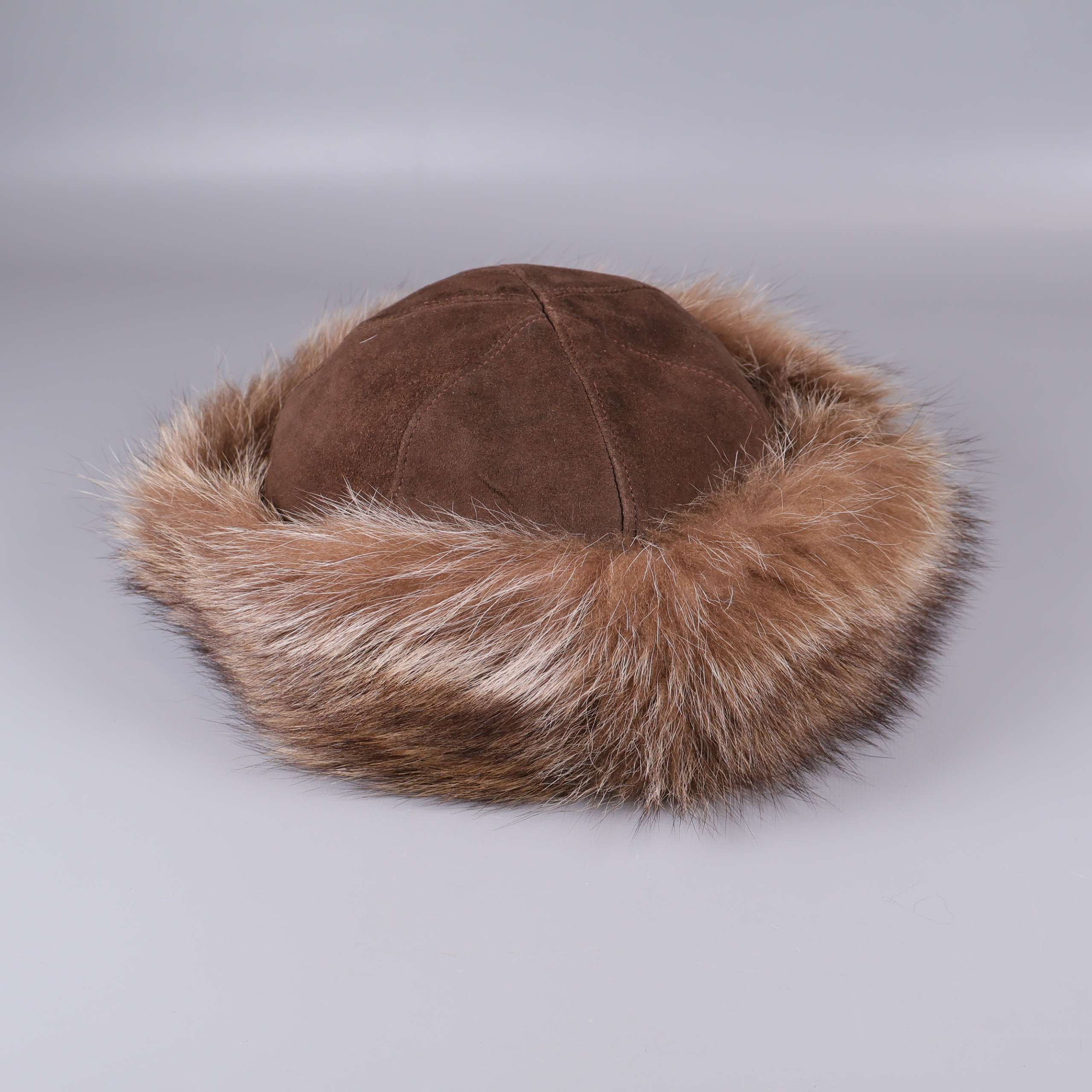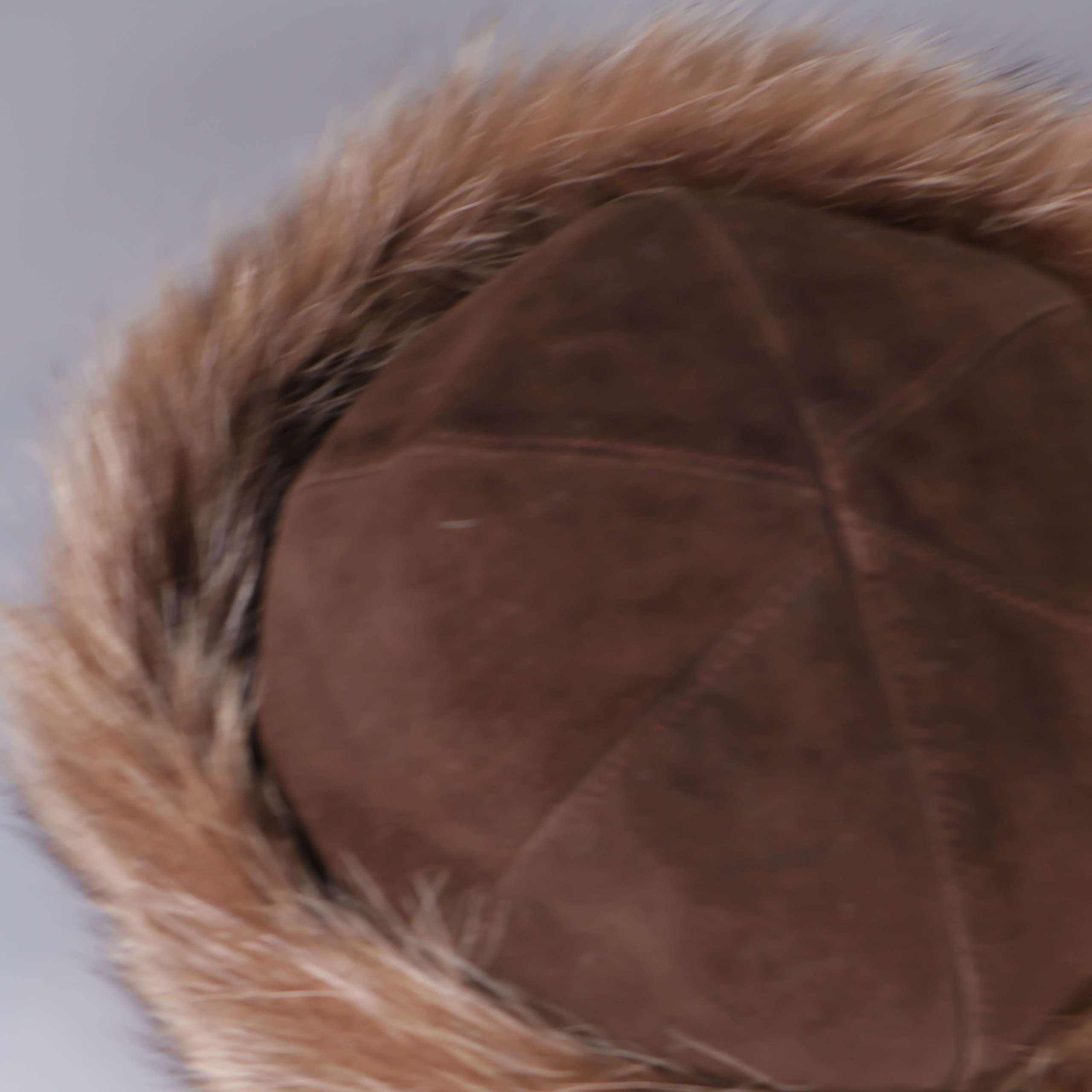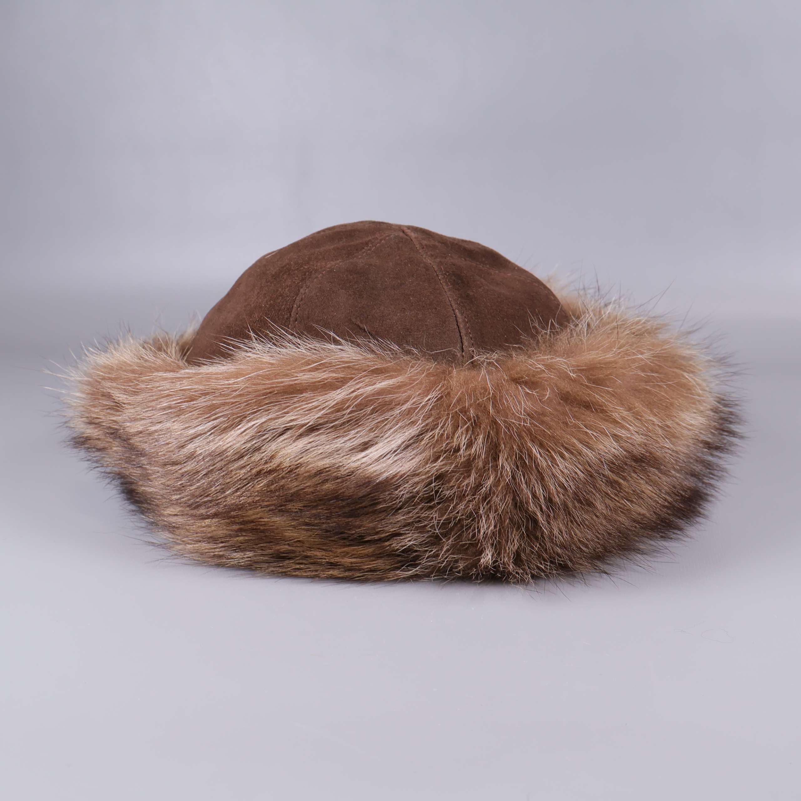 Klassisk mössa i mjuk brunt material med en bred och fluffig pälsdetalj runt kanten. Mössan har panelkonstruktion upptill och ett quiltat foder på insidan för extra komfort. Färgen skapar en varm känsla och pälsdetaljen ger ett stilsäkert intryck som håller dig både trendig och skyddad mot kyla.