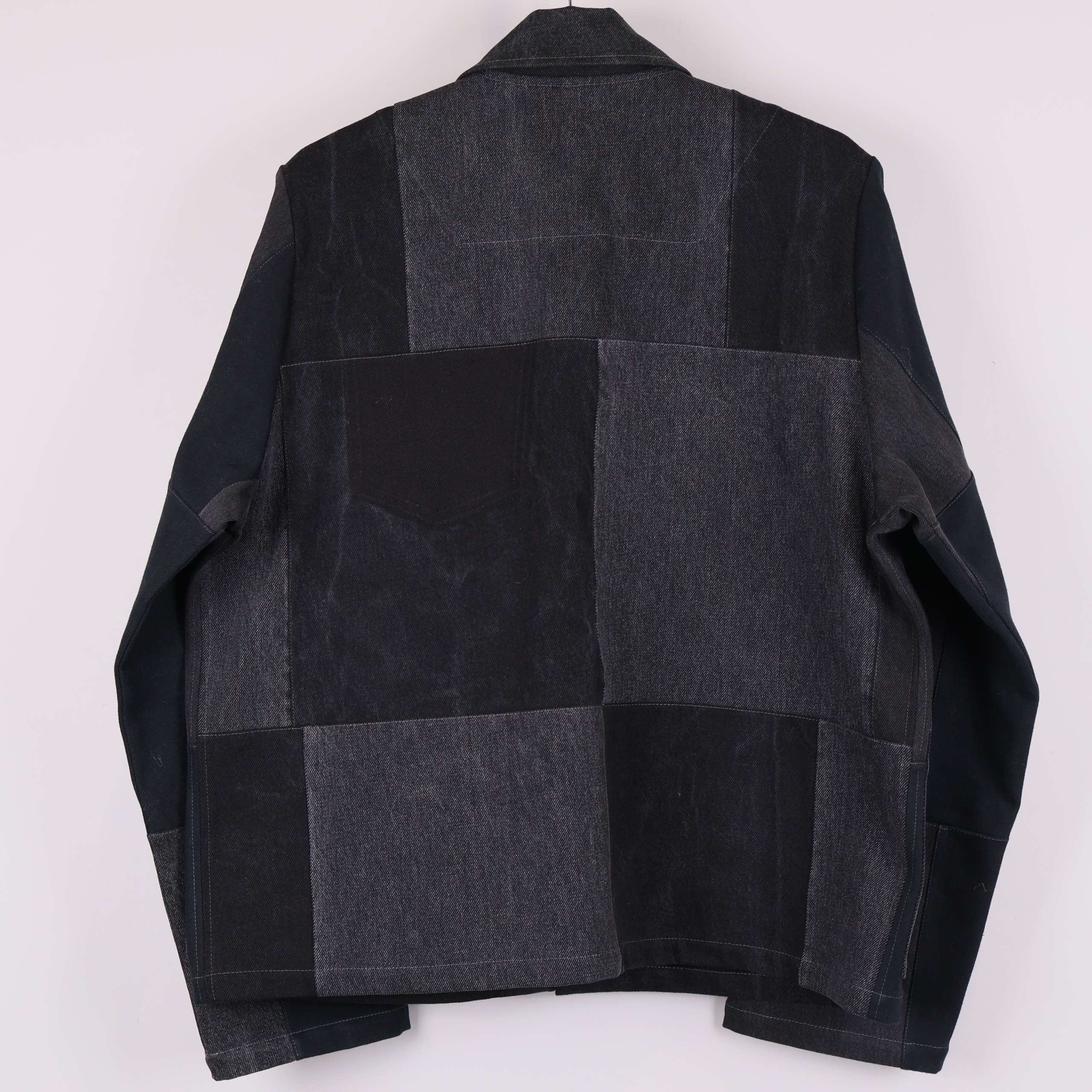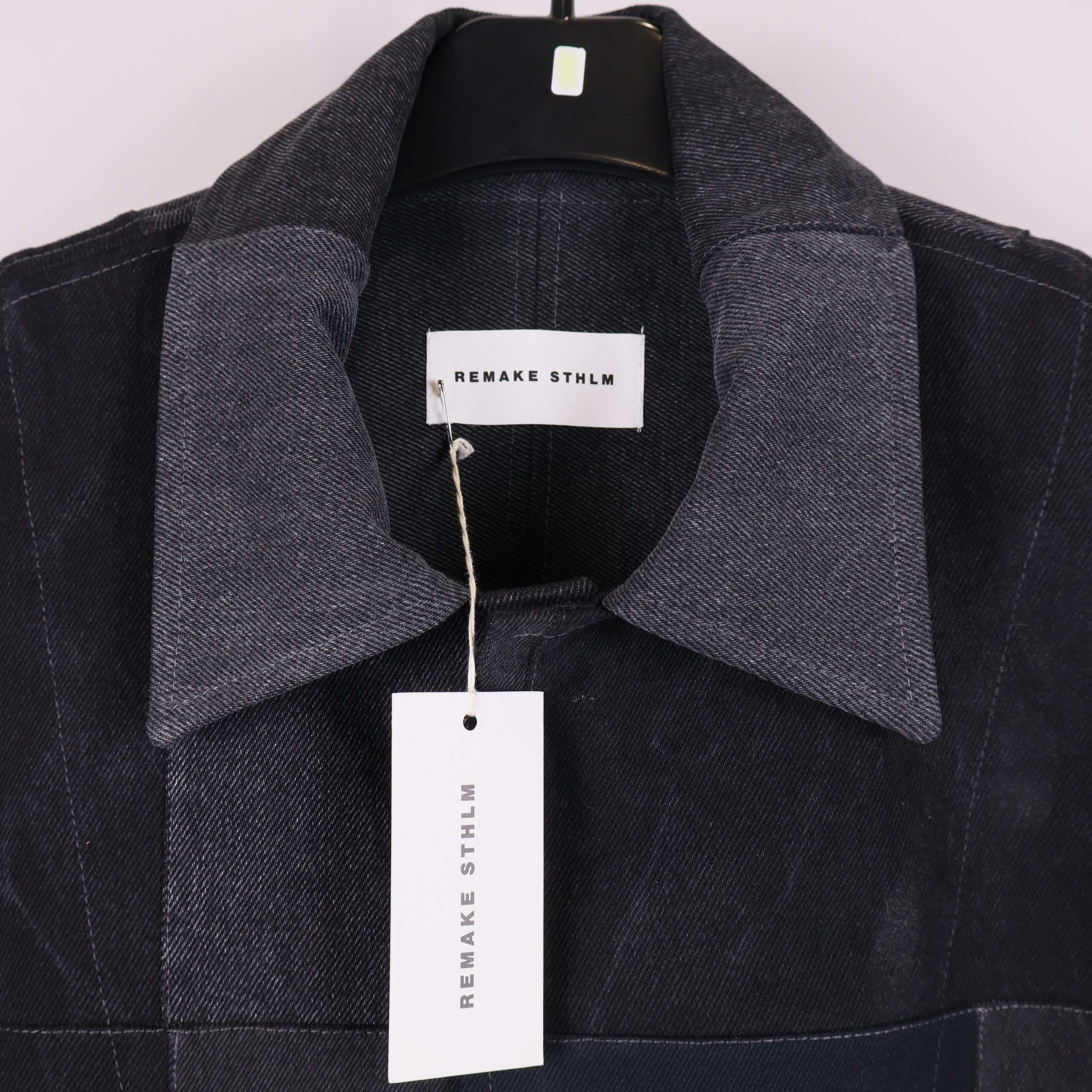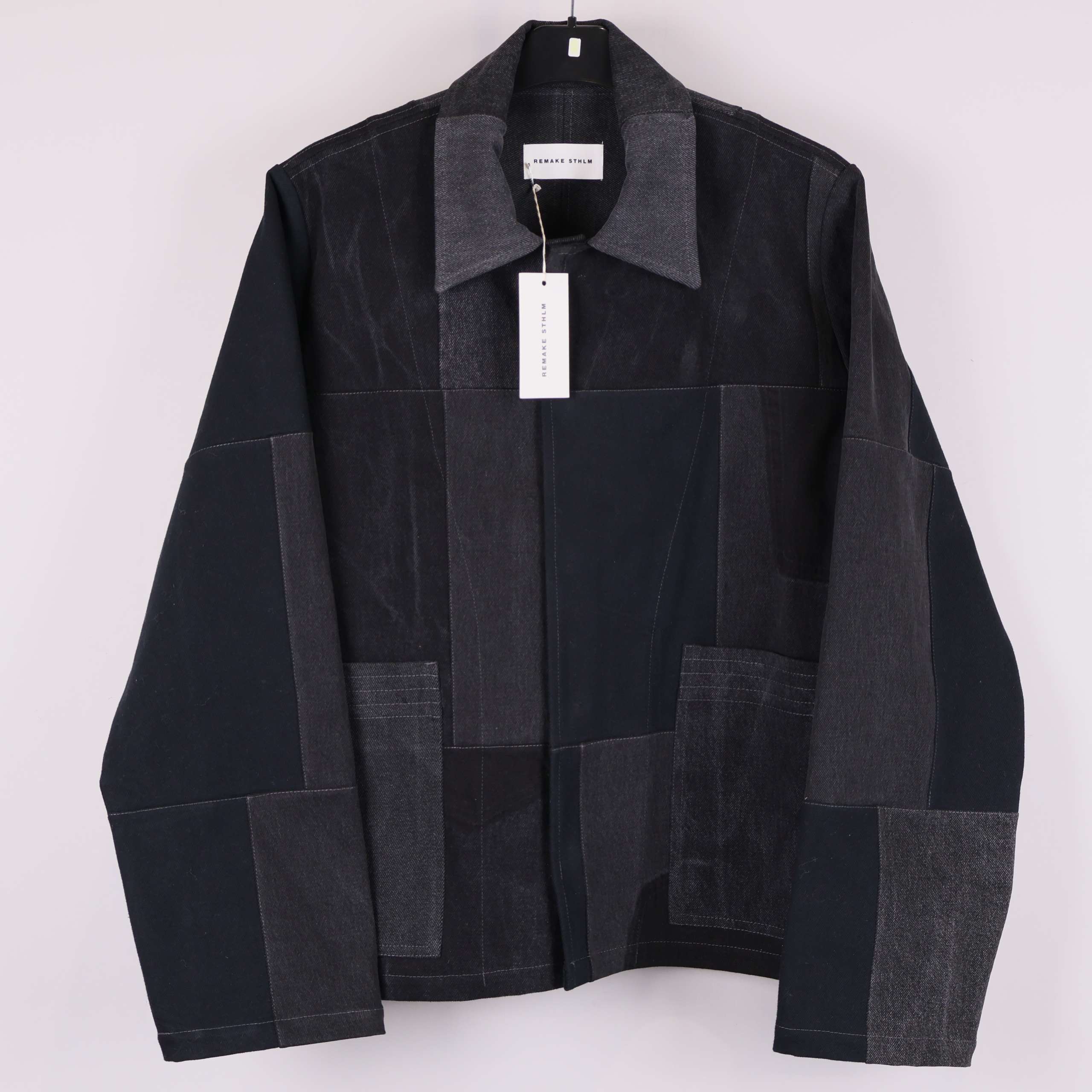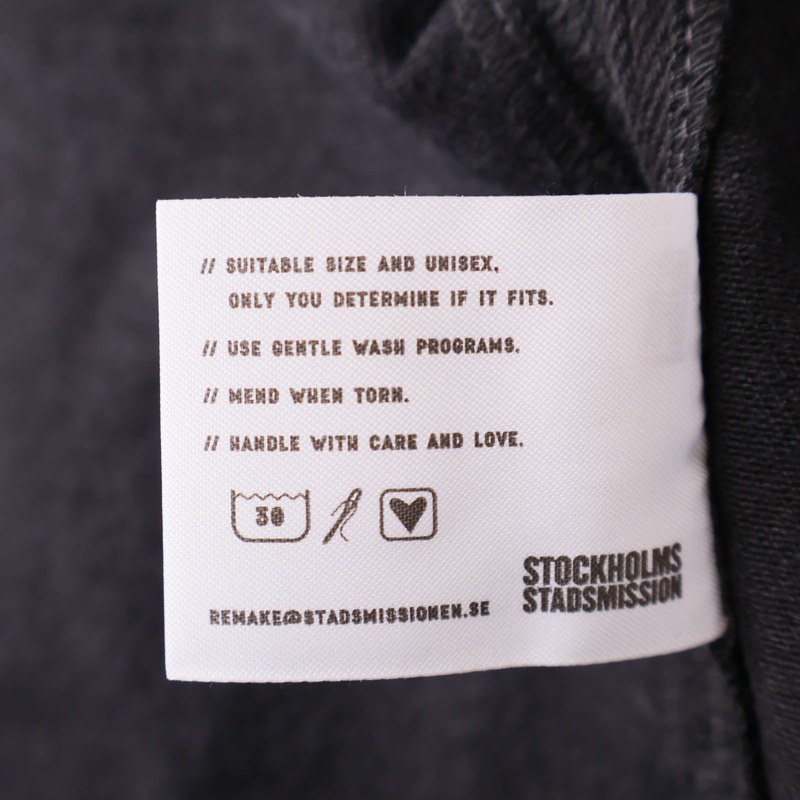 Workwear jacka i patchad denim, sydd av donerat material till Stockholms Stadsmission. Varje modell är noggrant tillskuren med krage, två framfickor och en innerficka. Modellen är rak, höftlång och den stängs med tryckknappar fram.