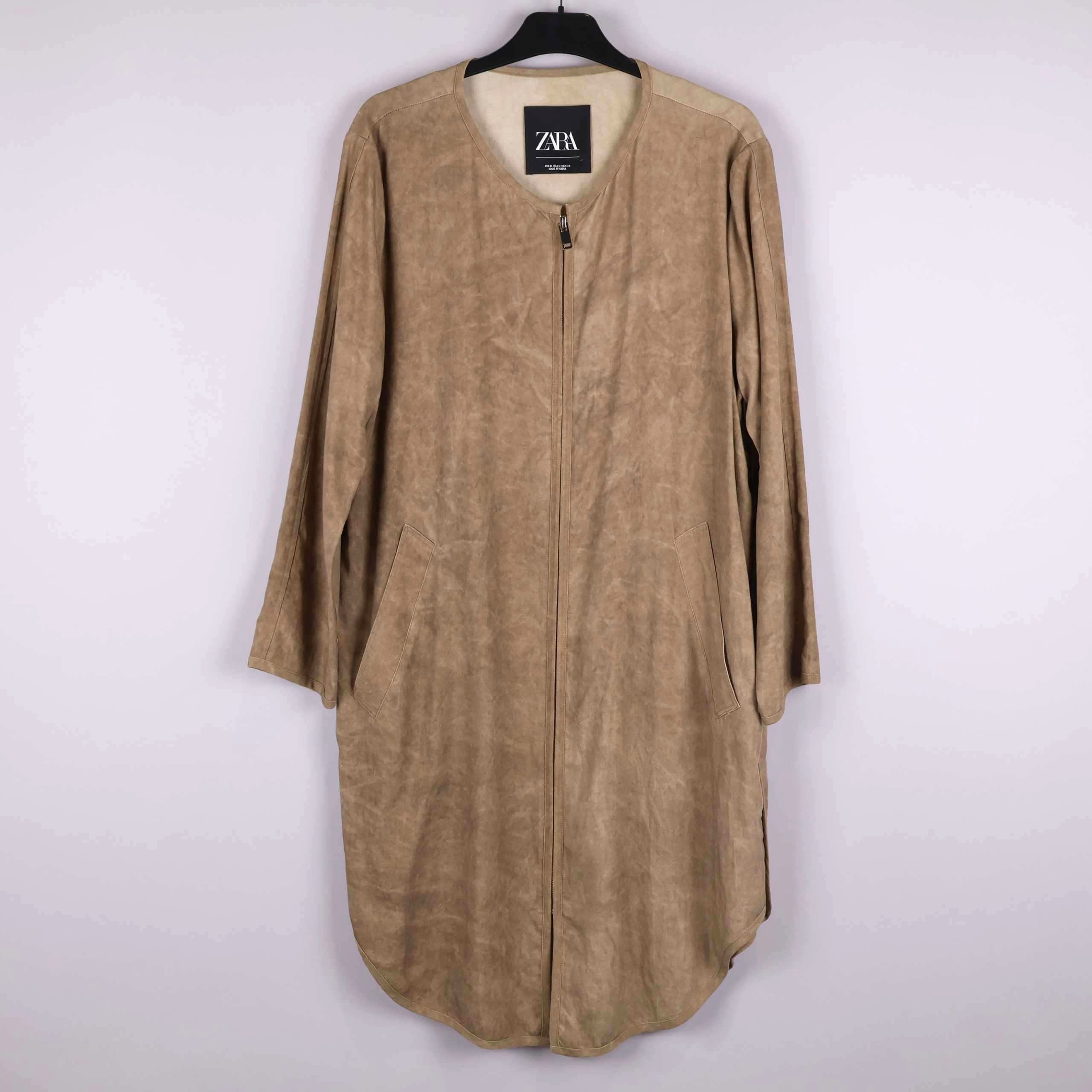 Stilfull lång kappa i beigemönster med rundad nederkant och praktiska fickor. Den diskreta dragkedjan framtill ger en clean och enkel känsla, medan det mjuka materialet ger en komfortabel passform. Kappan har en tidlös design.
