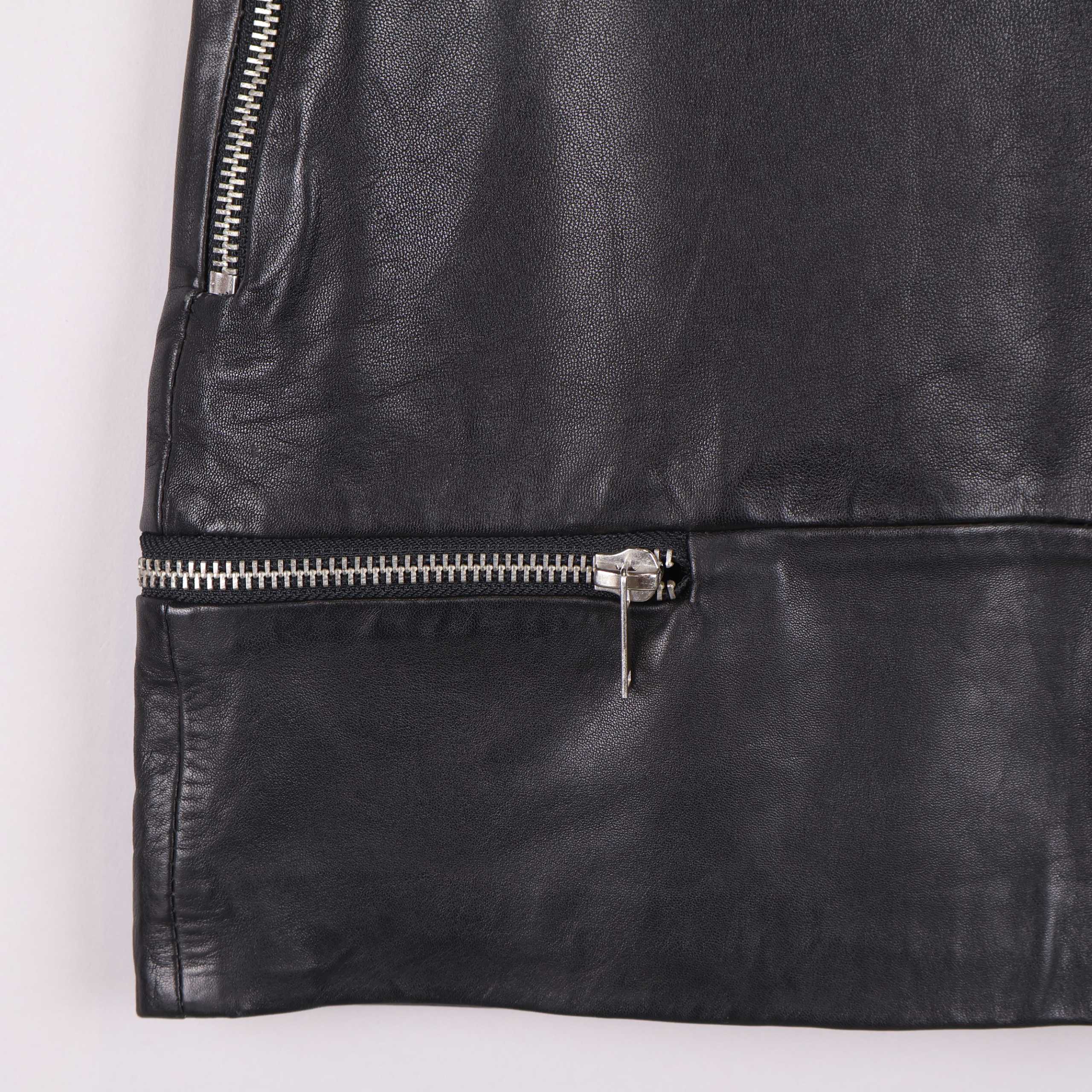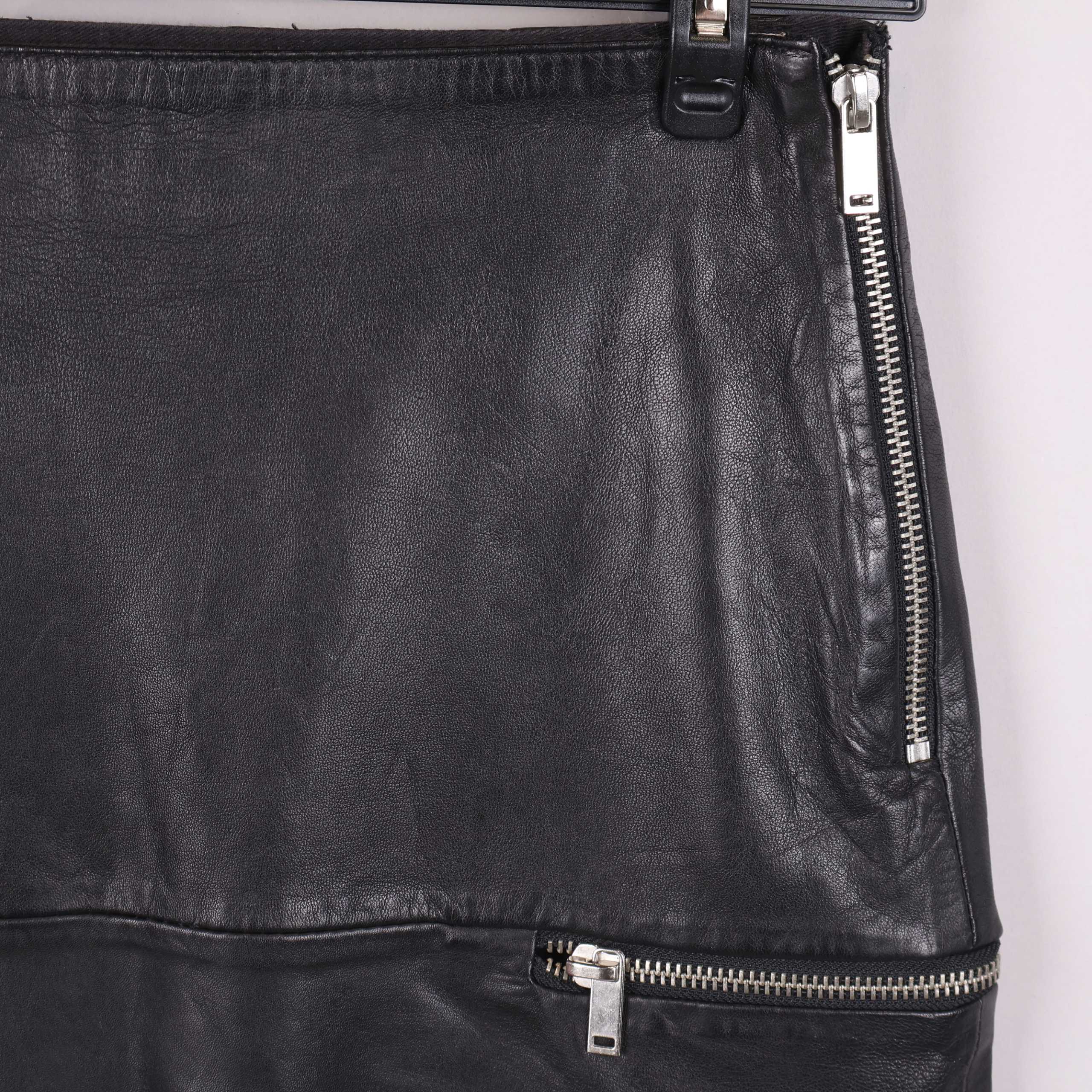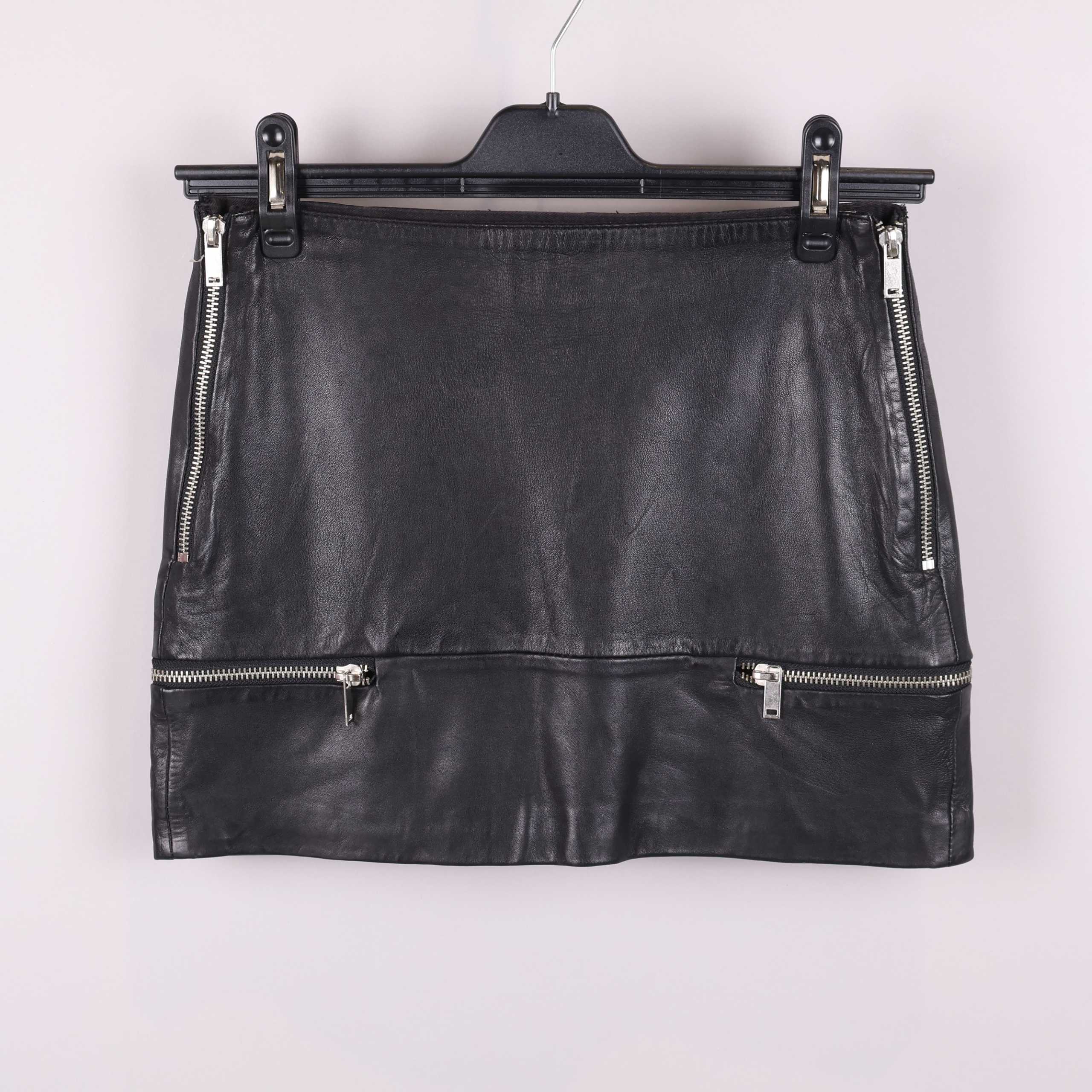 Tuff och stilren kort kjol i äkta läder med flera silverfärgade dragkedjor framtill och diskreta sömdetaljer. Kjolen har en klassisk svart nyans och en slät yta som ger ett modernt och edgy intryck.