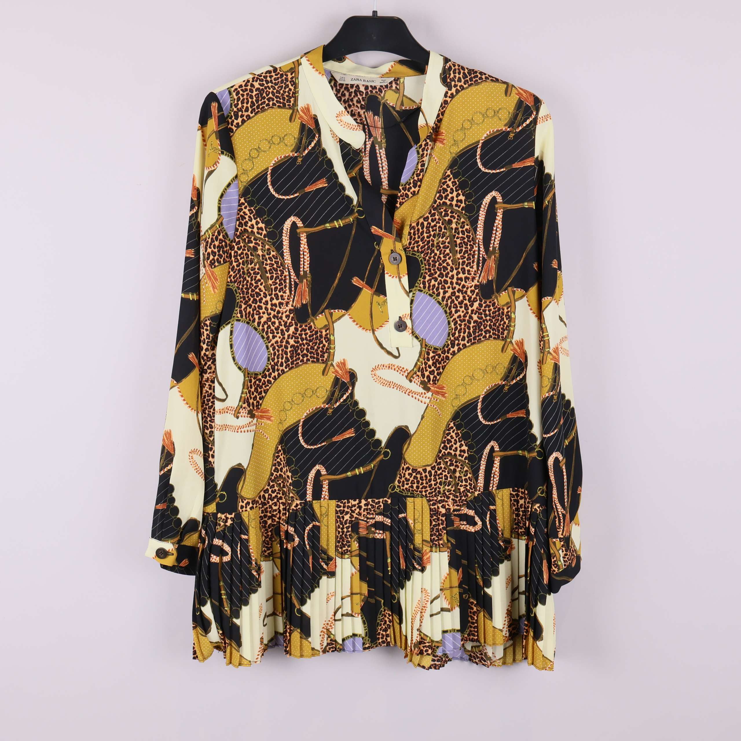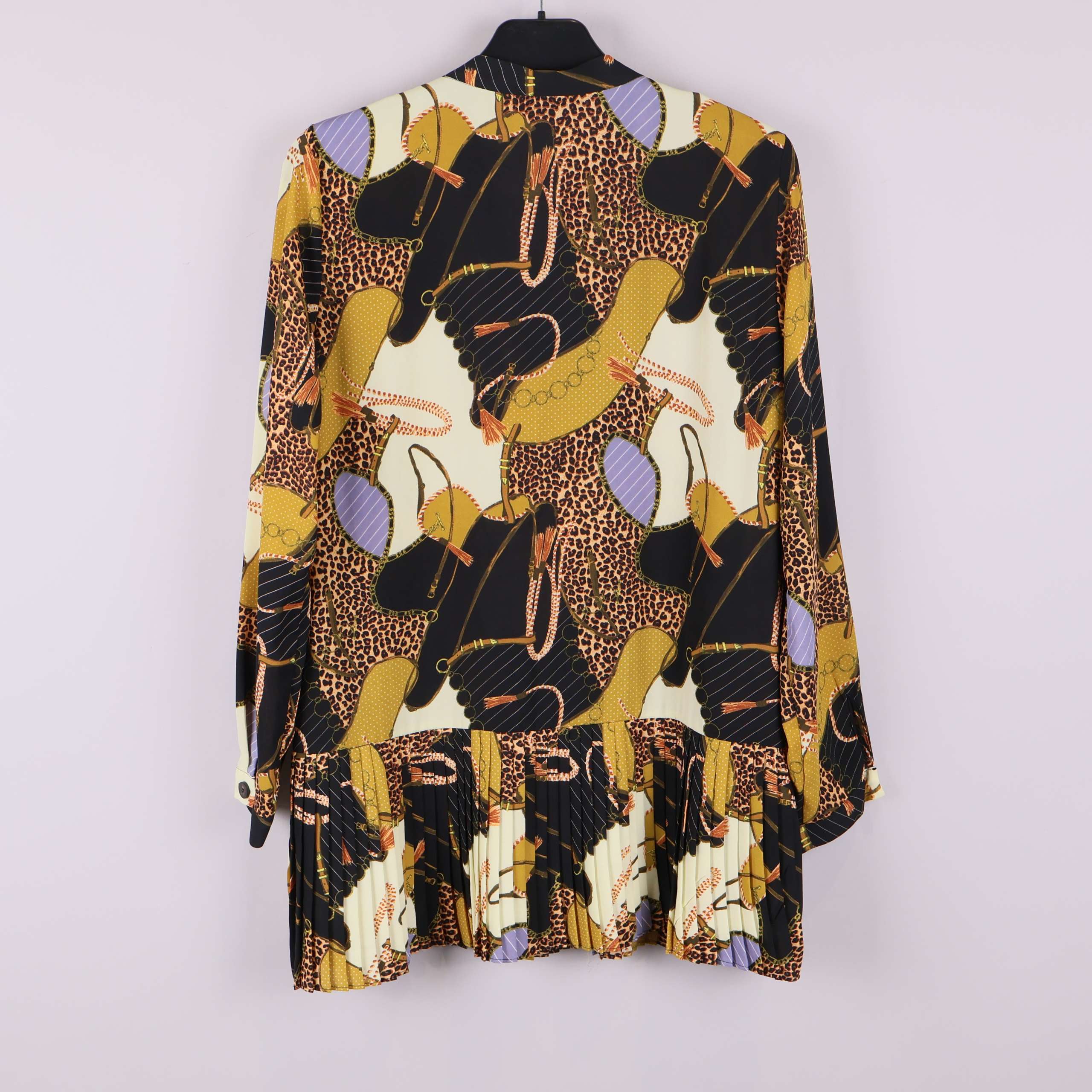 Härlig tunika med långt ärm och unik grafisk och djurmönstrad design i flera färger. Plagget har knappar framtill och en lätt plisserad nederdel som ger en modern känsla. Perfekt för dig som gillar en färgstark och lekfull stil med en relaxed fit.