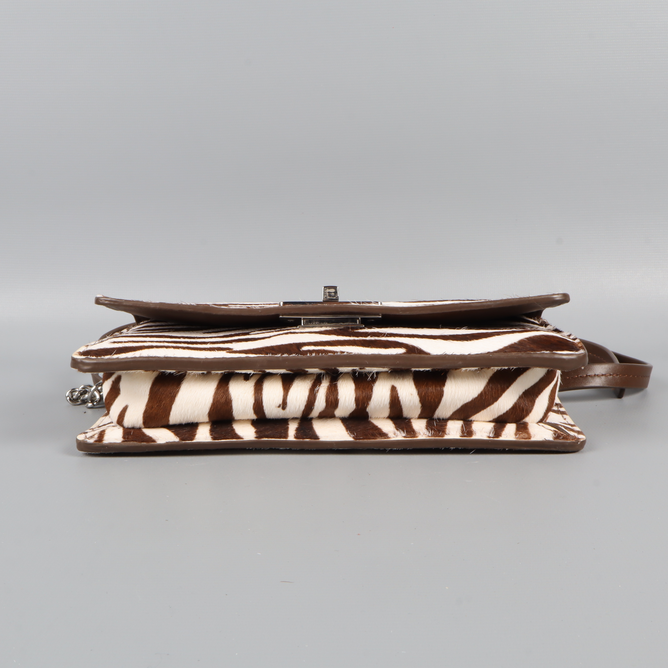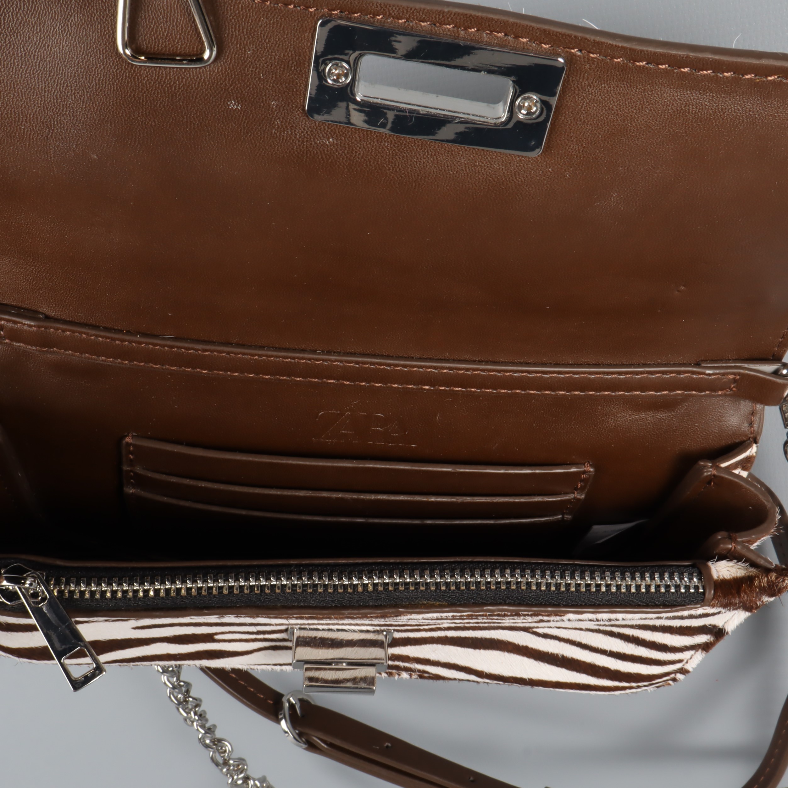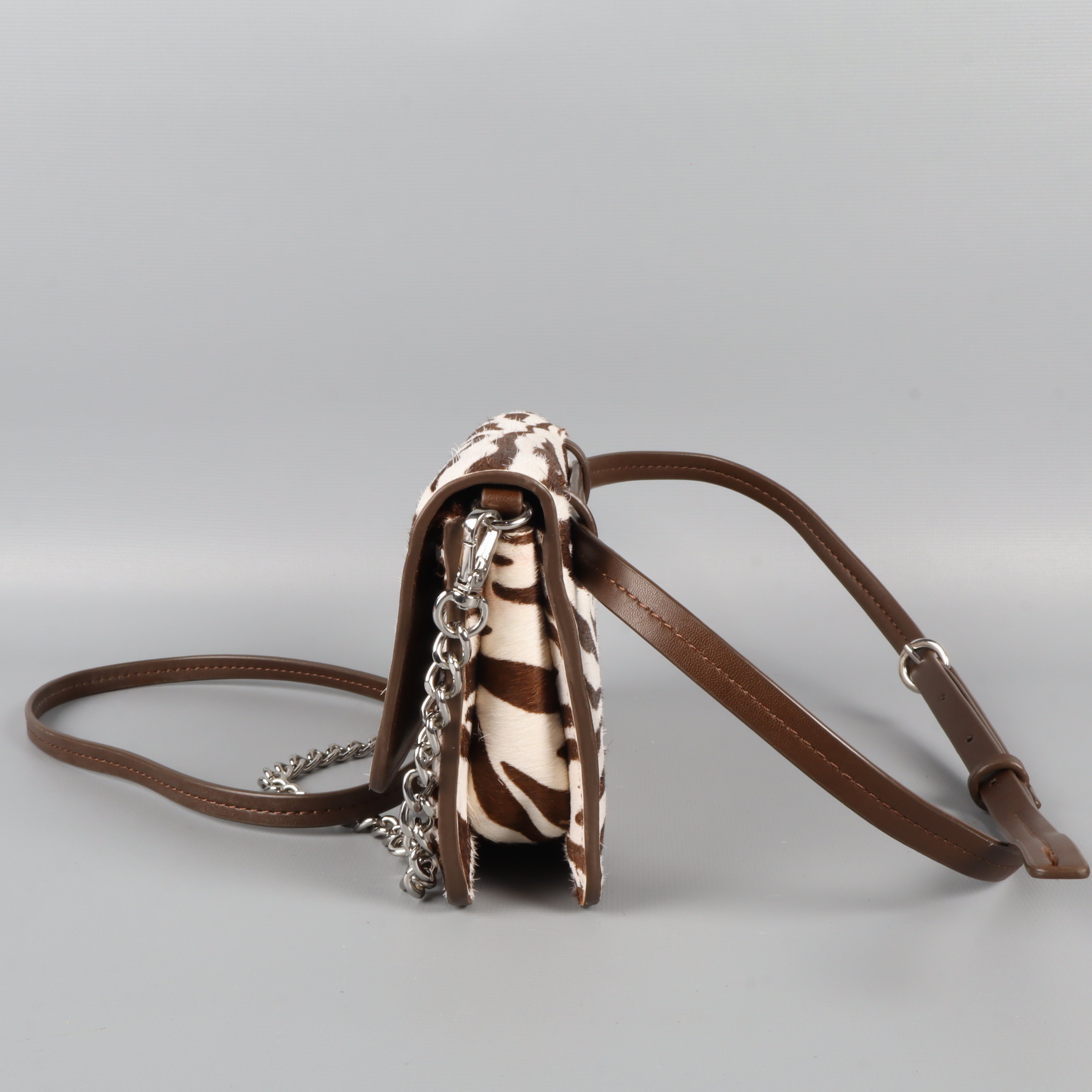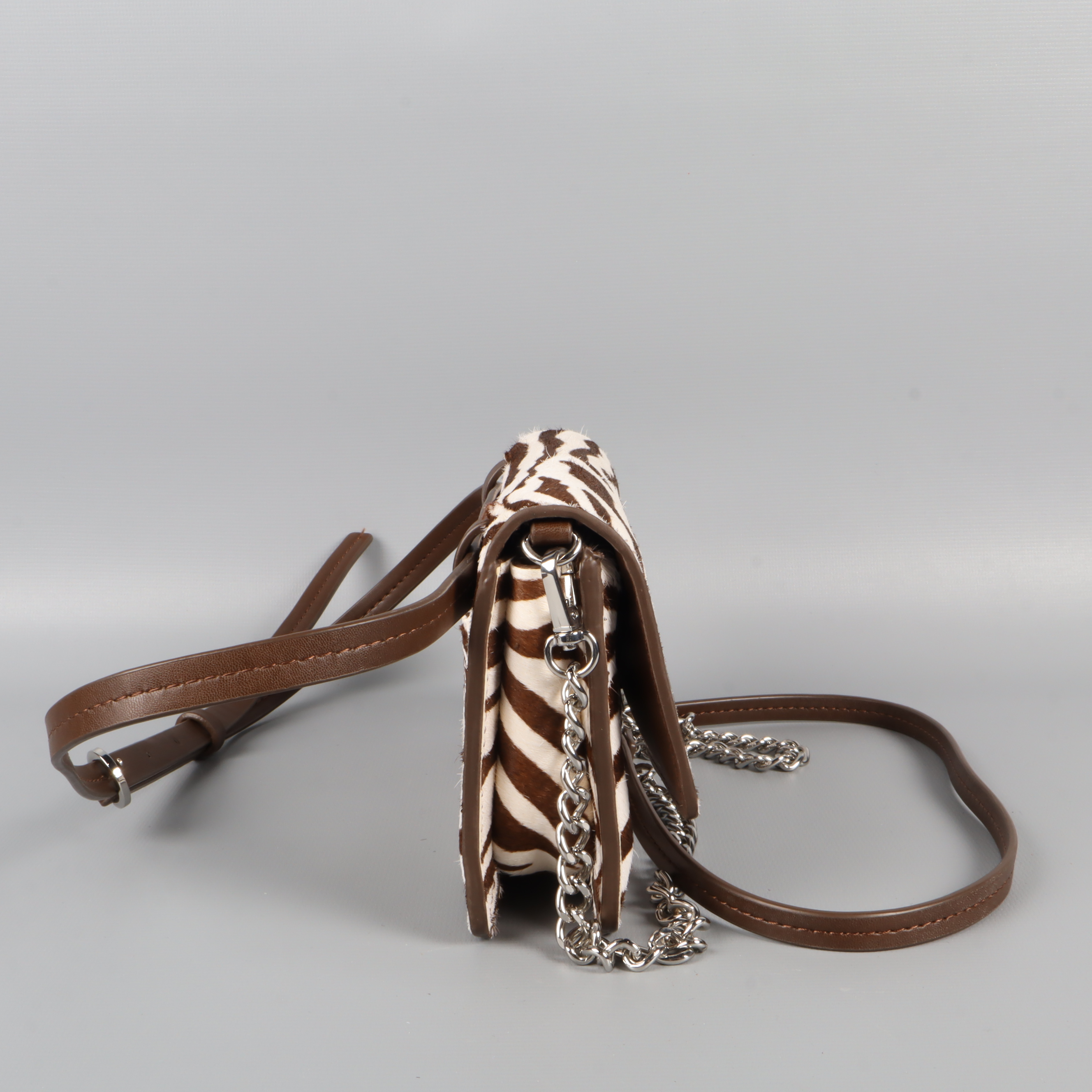 Stilren midjeväska/axelremsväska med iögonfallande zebramönster som kombinerar bruna och vita toner. Försedd med eleganta kedjedetaljer och justerbar axelrem för både stil och komfort. Invändigt finns flera praktiska fack för dina nödvändigheter.